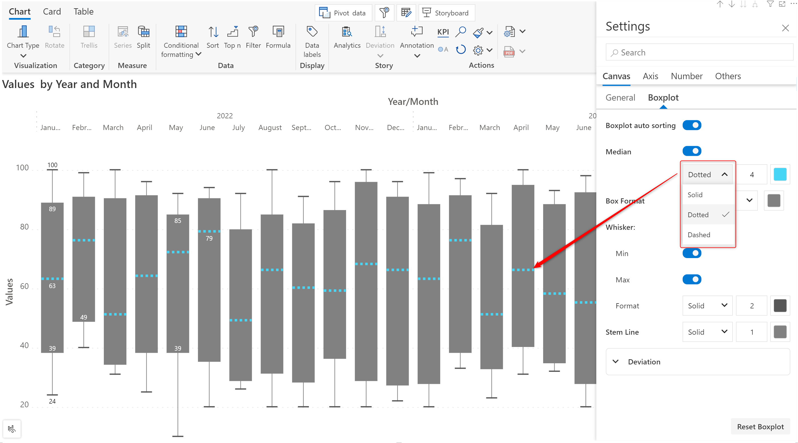 **STEP 3:** Select the Boxplot chart from the Chart Type dropdown.