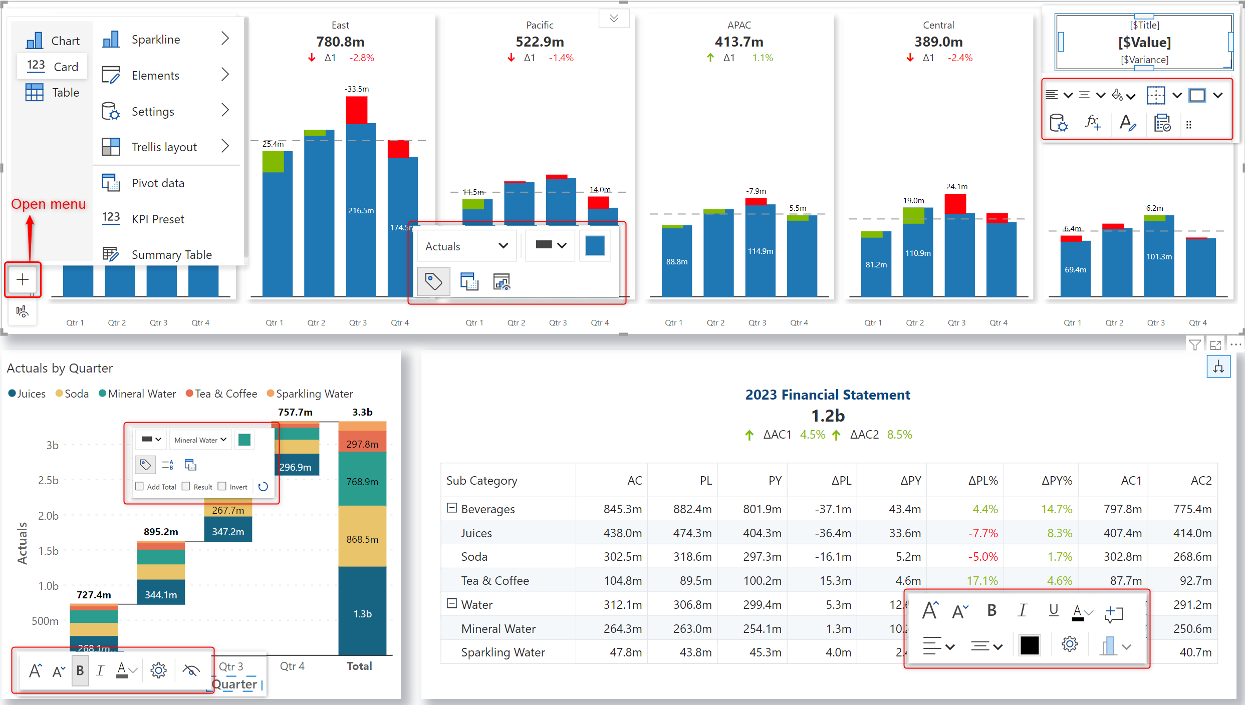 * You can simply click on any element that you want to customize and use Inforiver's handy on-object interaction menus to access the wide range of options.