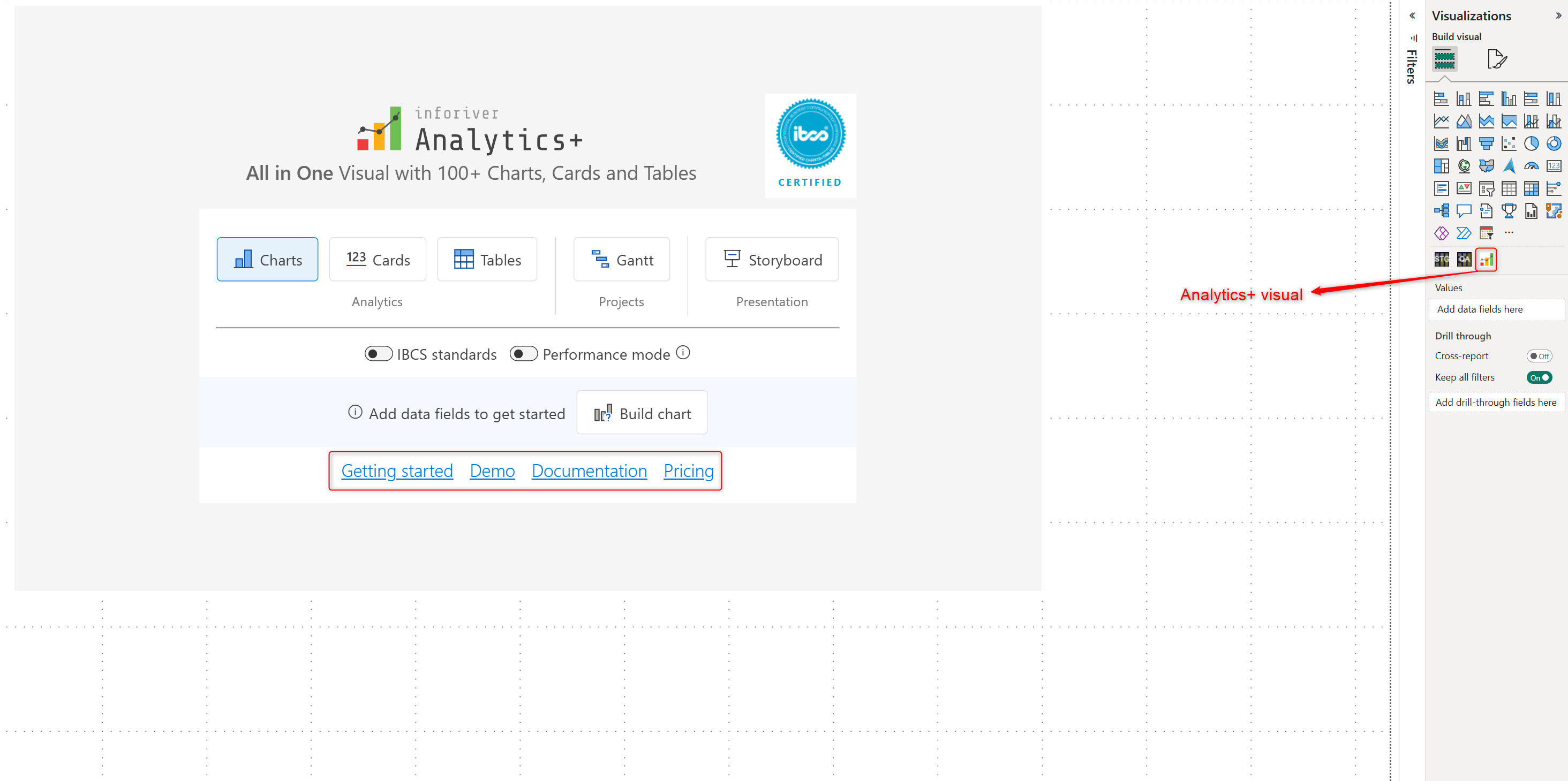 First, we need to add the Inforiver Analytics+ visual to the Power BI canvas. Use the links in the visual for additional information: