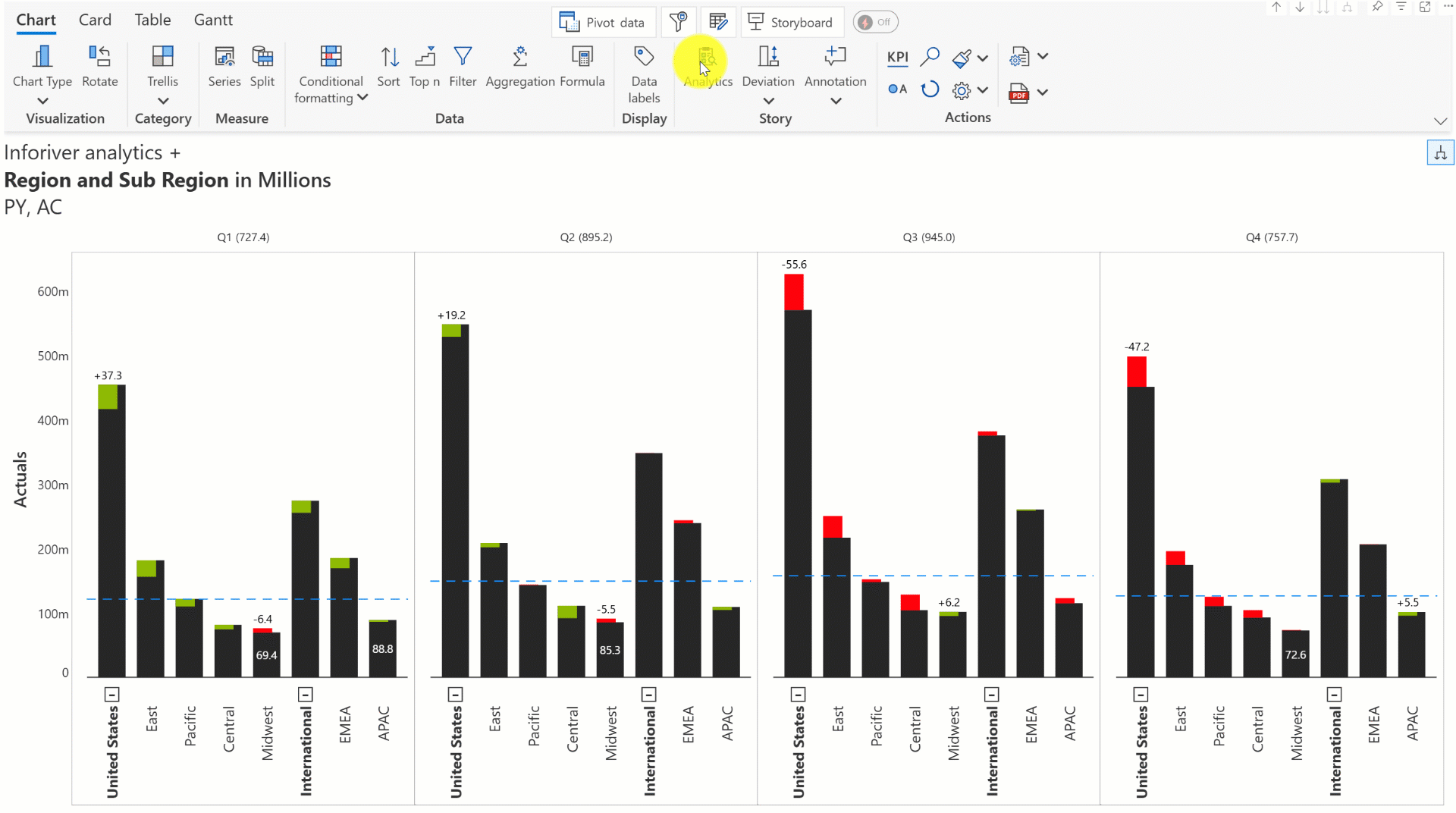 Create stunning, interactive dashboards in under a few minutes with the powerful Storyboard. [Learn more about Storyboard mode](https://docs.inforiver.com/analytics+/storyboard).