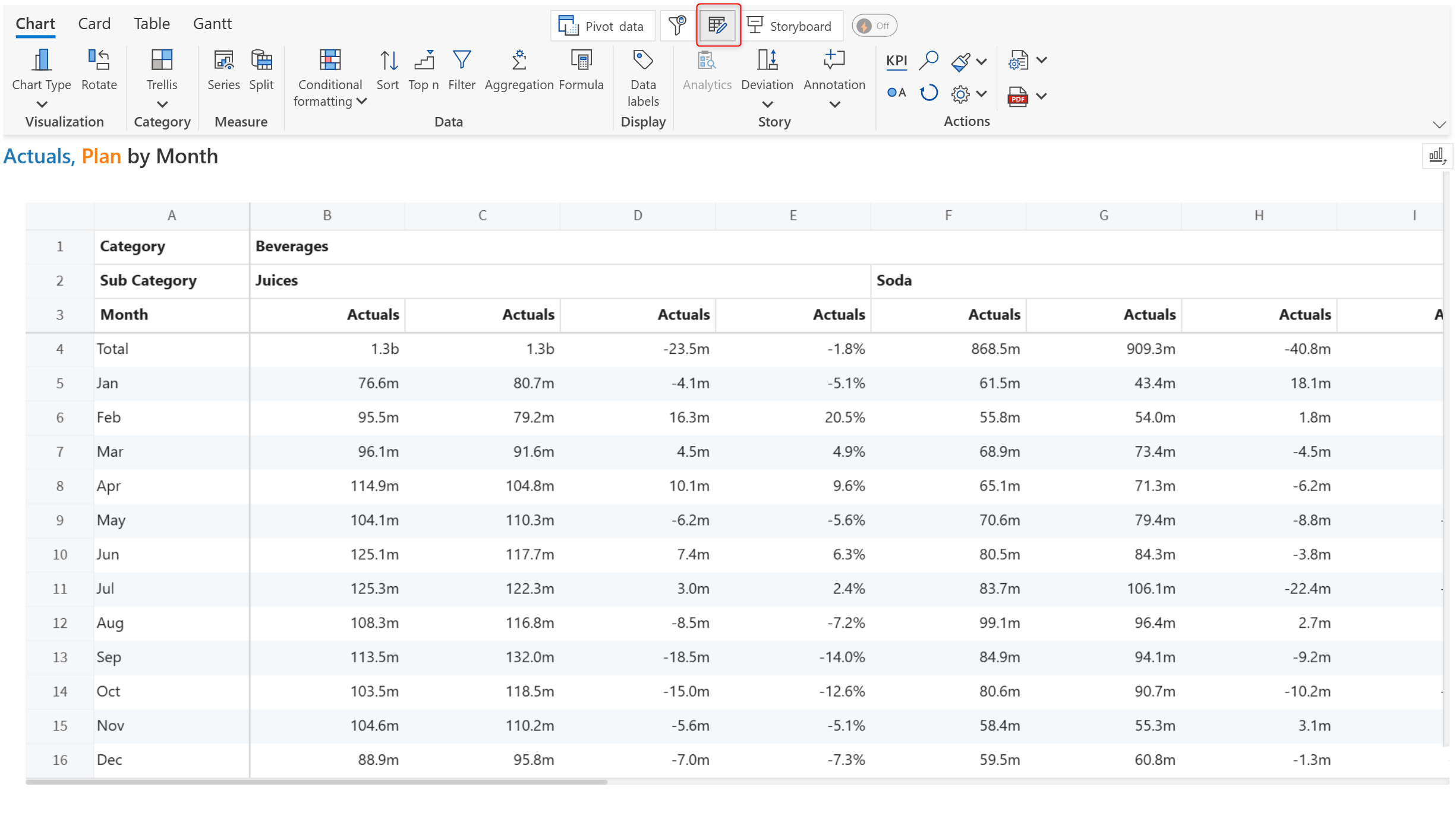 <figure><img src="https://3132984990-files.gitbook.io/~/files/v0/b/gitbook-x-prod.appspot.com/o/spaces%2FbOoZhPvC57Z0CNgep4Ib%2Fuploads%2FZ7Ef3aOOrJVqTJRFb1gF%2Fimage.png?alt=media&#x26;token=0c397a6e-99a0-401c-a5de-799b838842be" alt=""><figcaption><p>Pivot data in the toolbar</p></figcaption></figure>