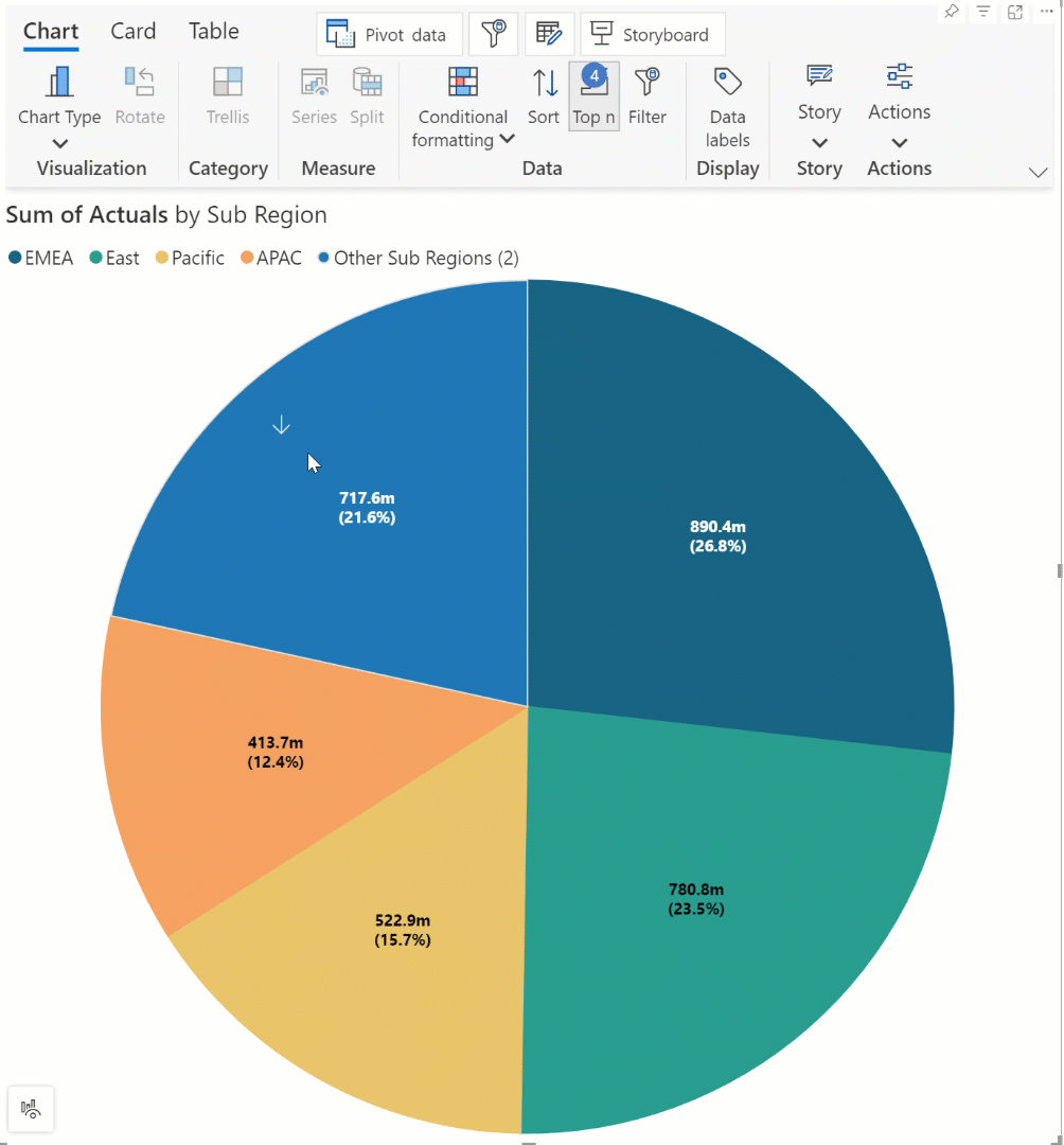 After applying the Top N rules discussed above, the chart is rendered as shown below.