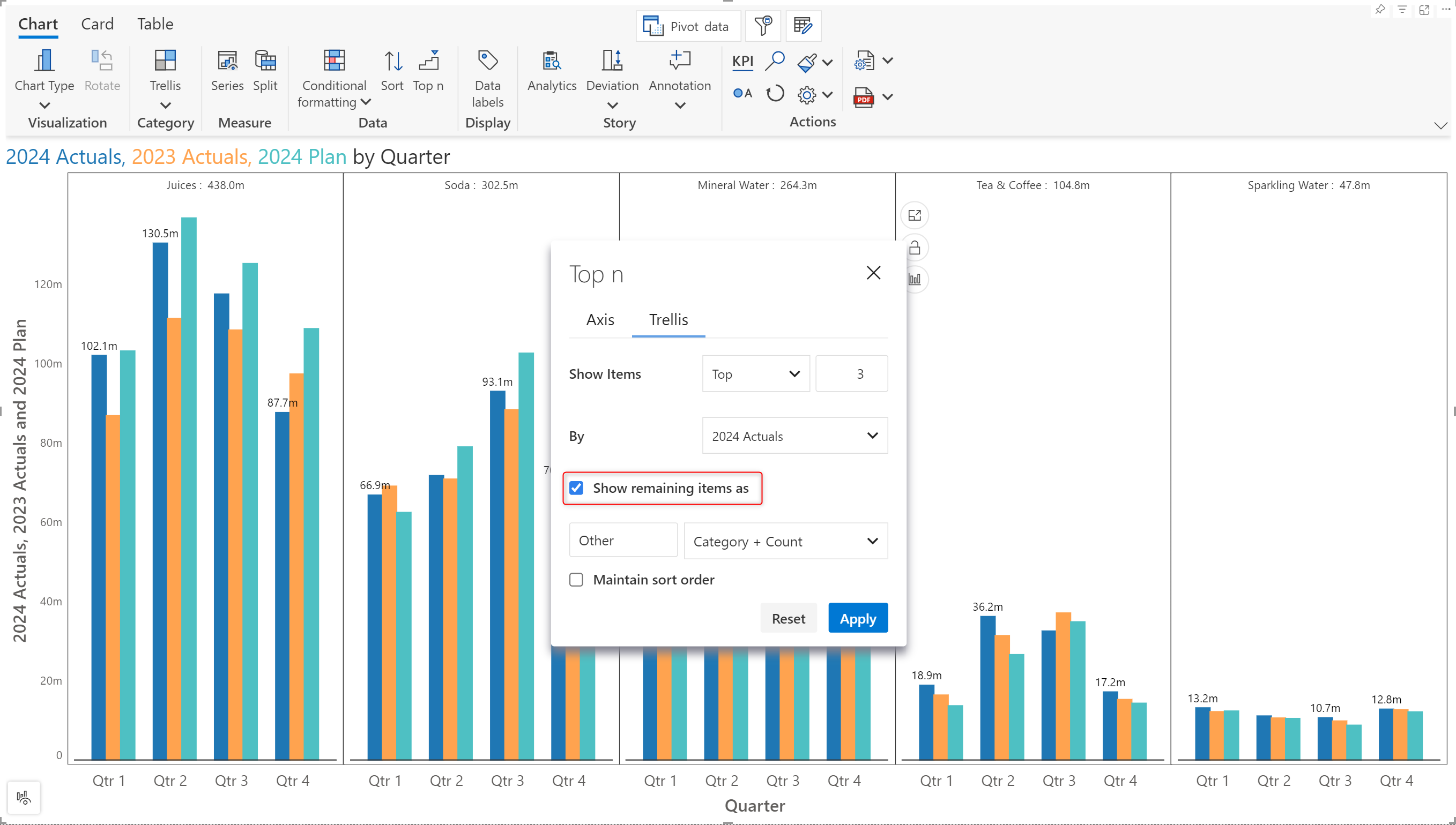 In trellis mode, the Others panel value will also be considered for sorting when the **Maintain sort order** option is enabled. Note, we have set the ranking to 2 to demonstrate this feature.