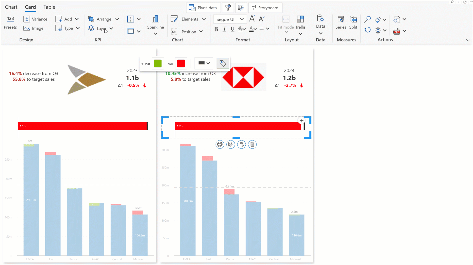 **Creating a group:** In the KPI section of the toolbar, navigate to Layer > Customize Layers. Select the elements to be combined and click the Group radio button.