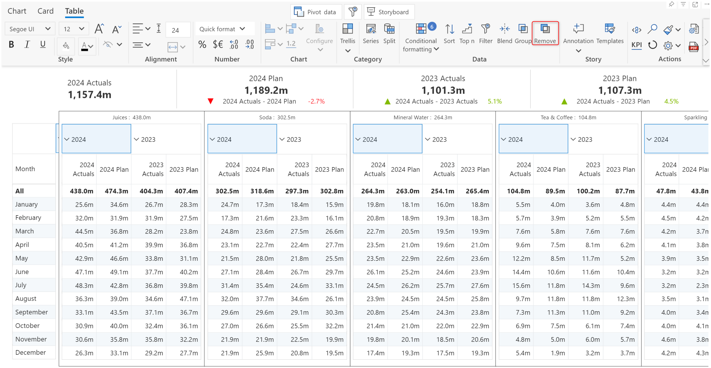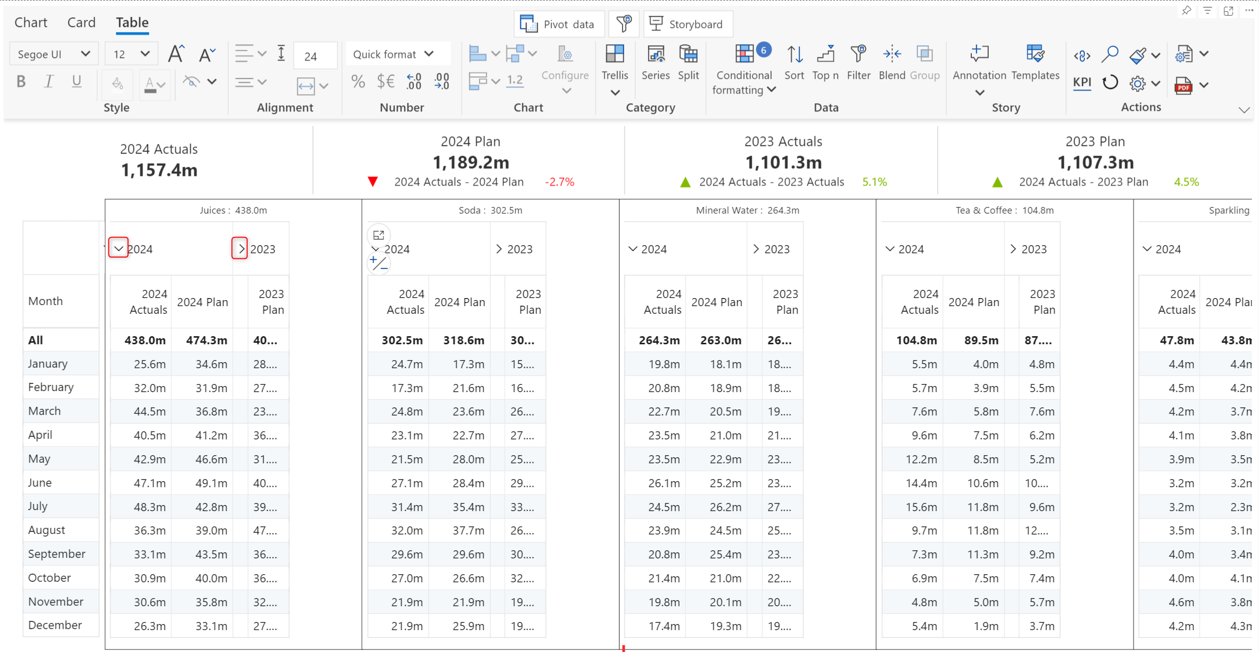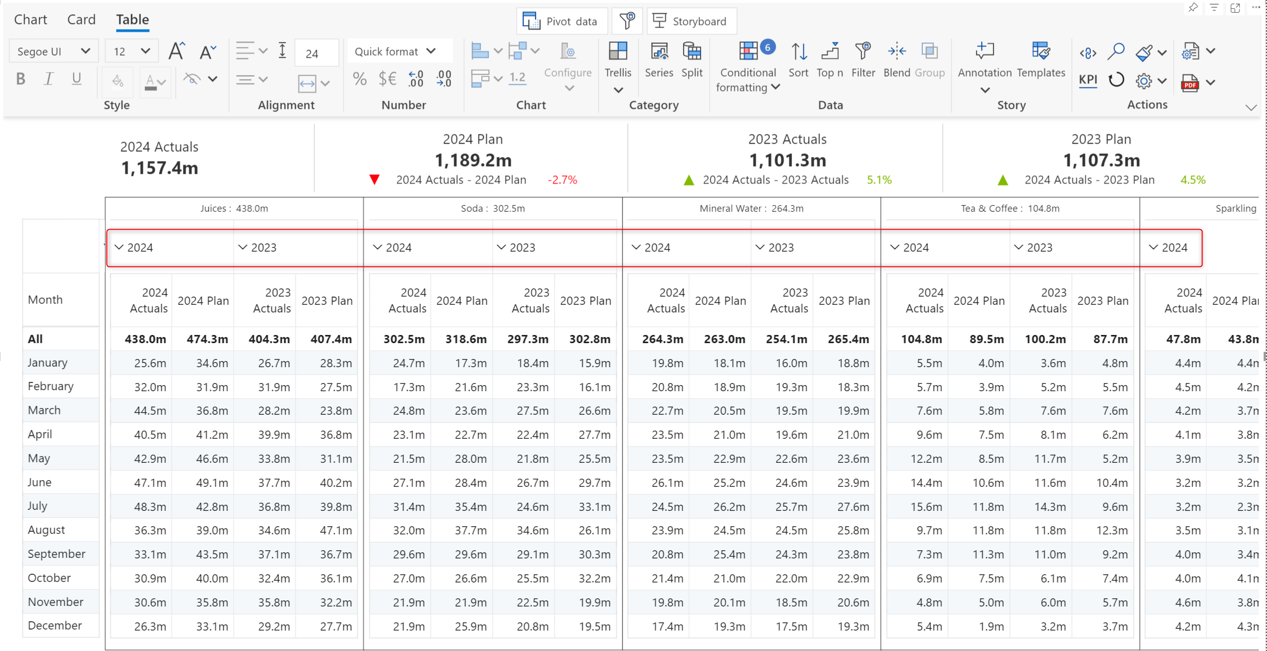 We've grouped the Actuals and Plan into the 2024 and 2023 buckets.&#x20;