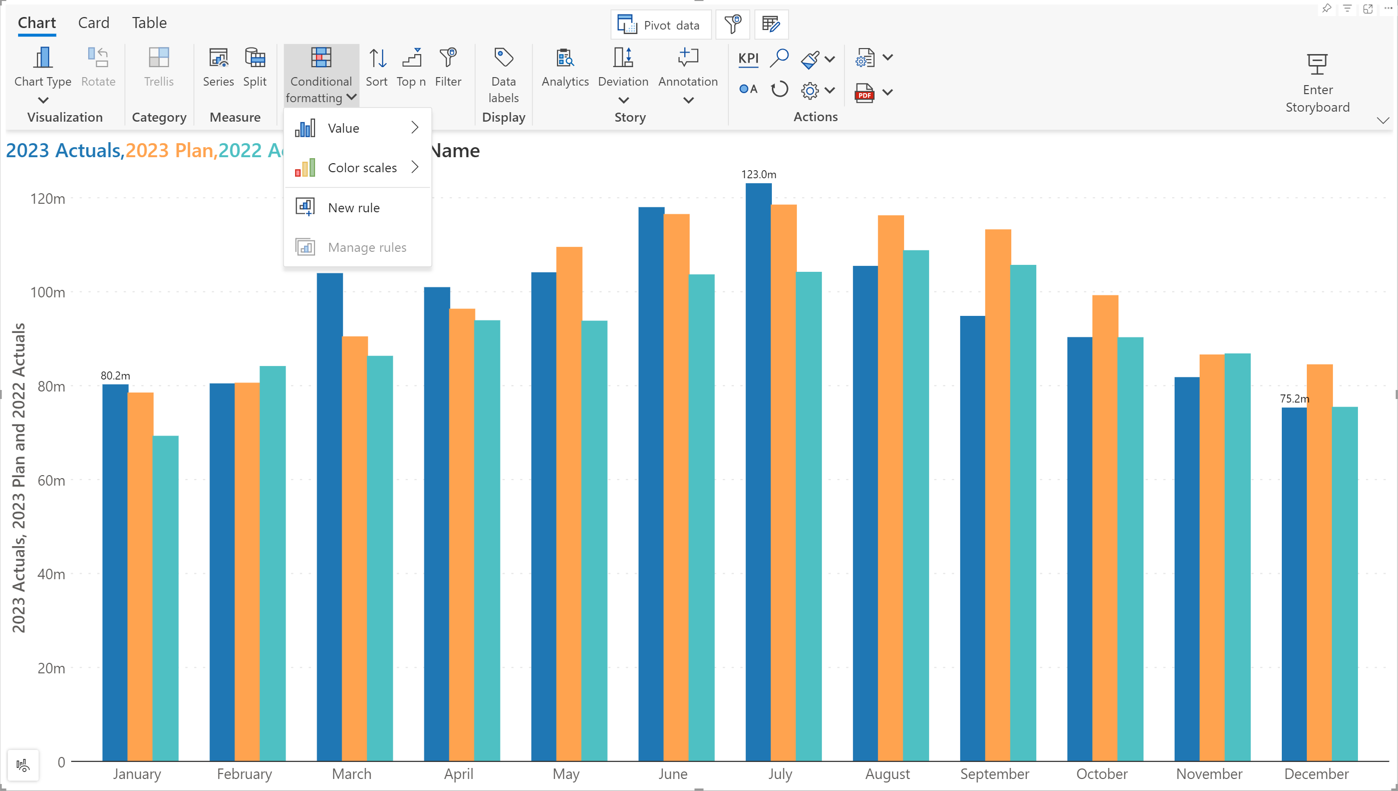 Analytics+ offers quick, single-click options such as quick rules and color scales which are covered in one-click rules.