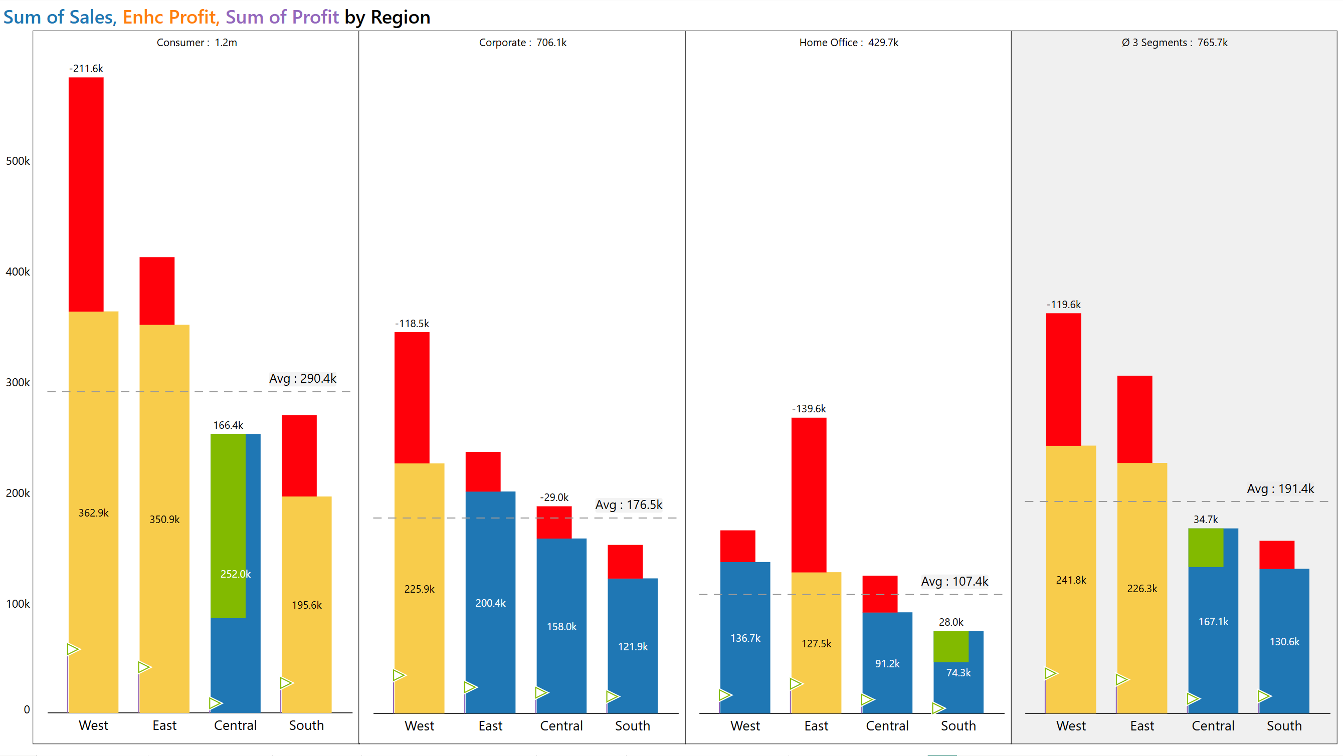 Notice how we've highlighted the regions with enhanced profits greater than the grand average across segments.