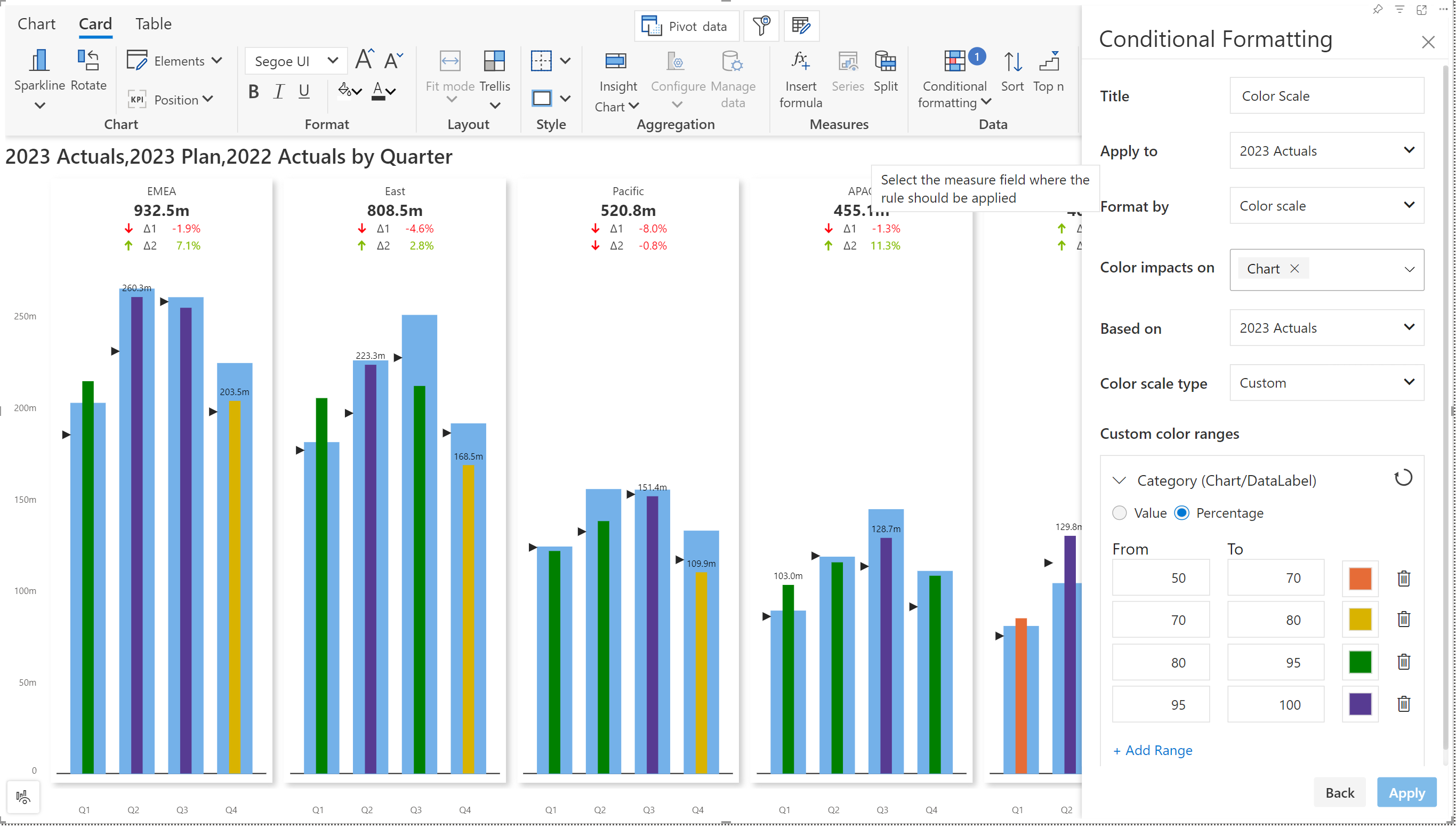 We've applied a custom range to color-code the bar chart.