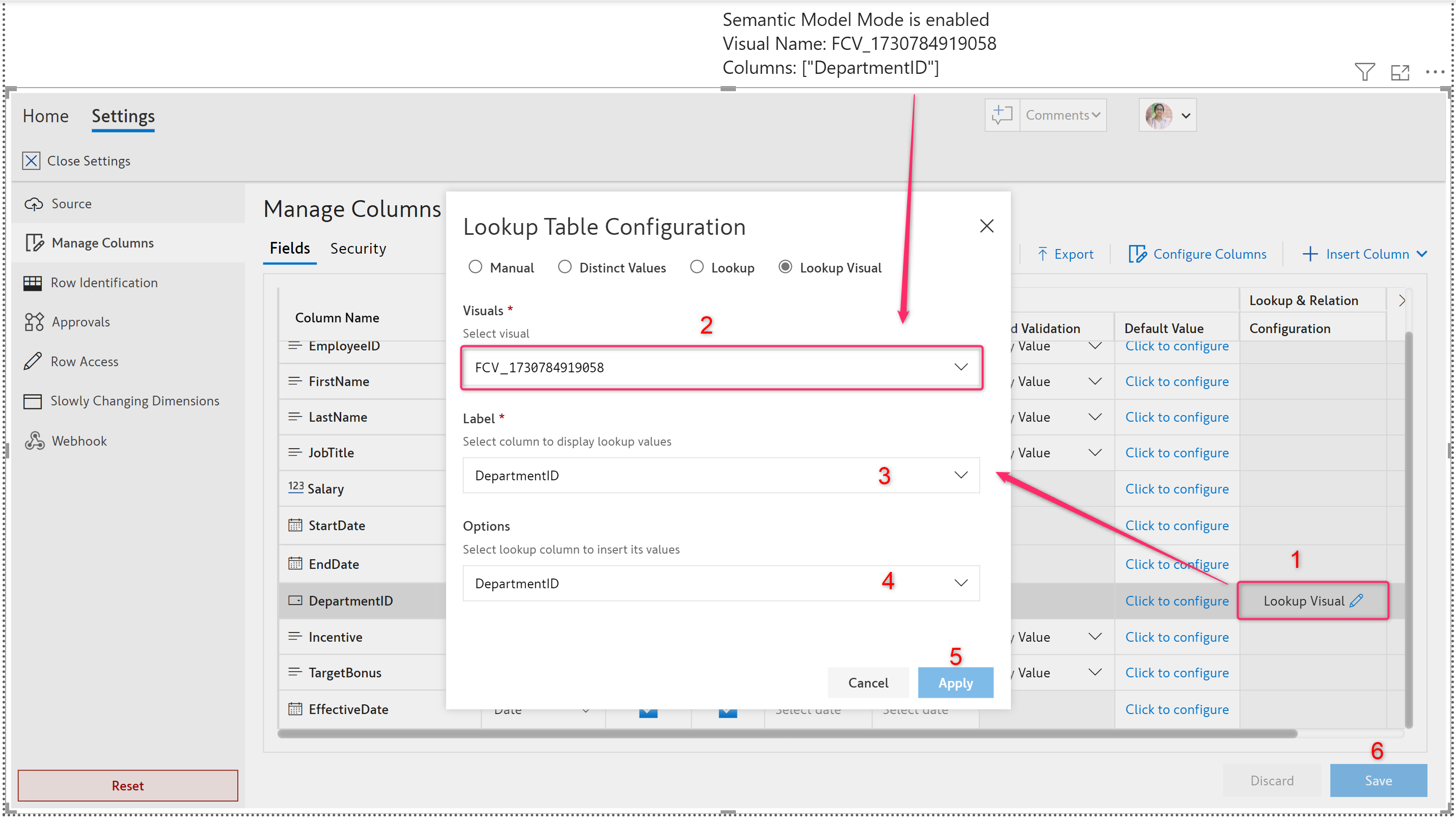 Step 3: Configuring the lookup table within EDITable with the helper visual details.