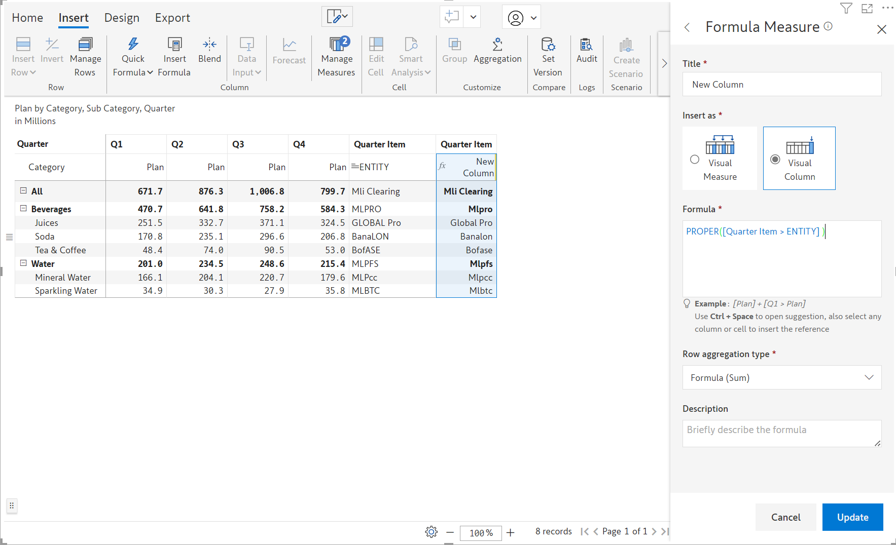 The **PROPER** function converts the first character of a text string into uppercase. The remaining characters will be lowercase. Node references are also accepted as arguments.