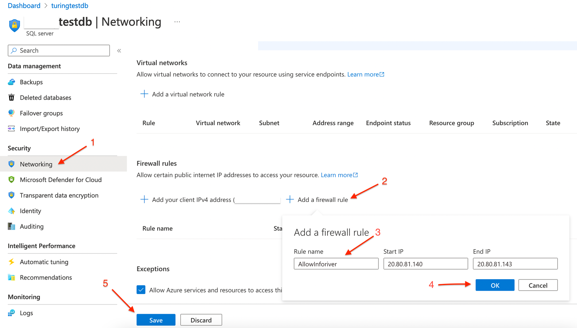 ### 2. Whitelisting for Azure SQL