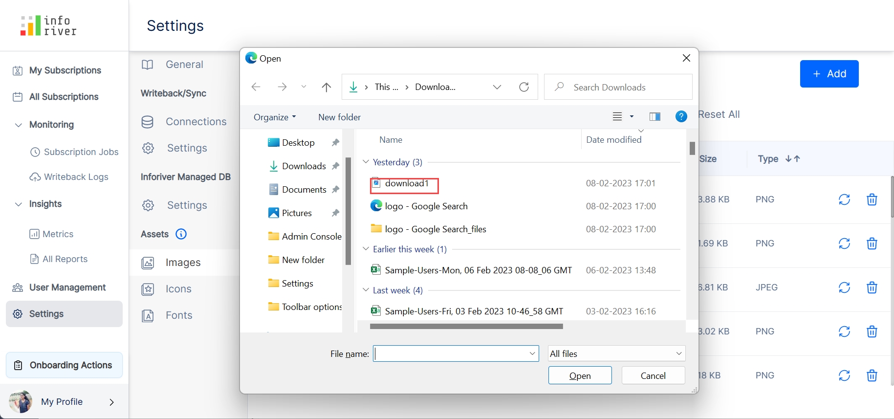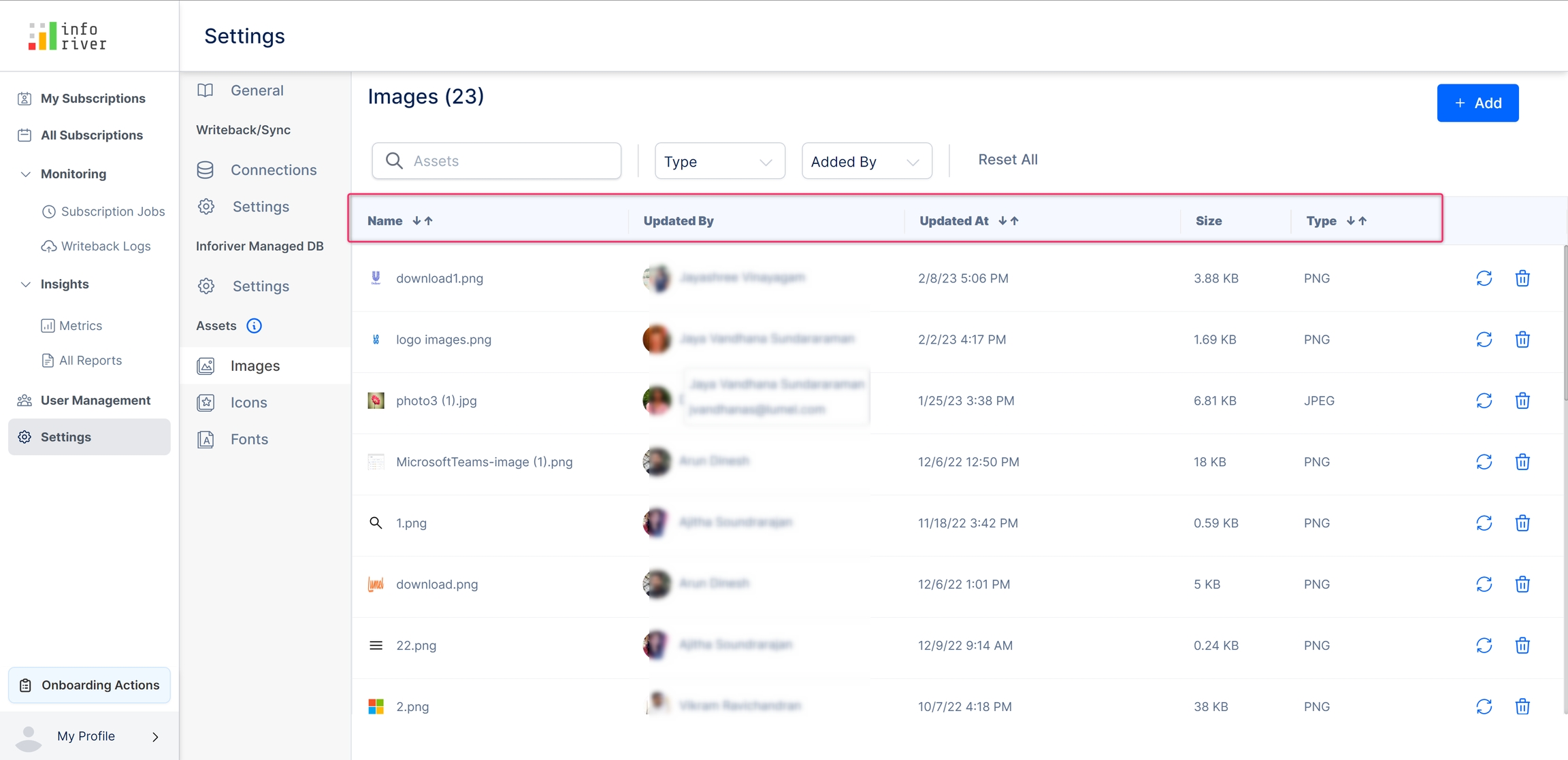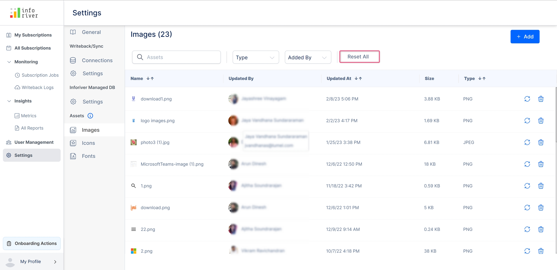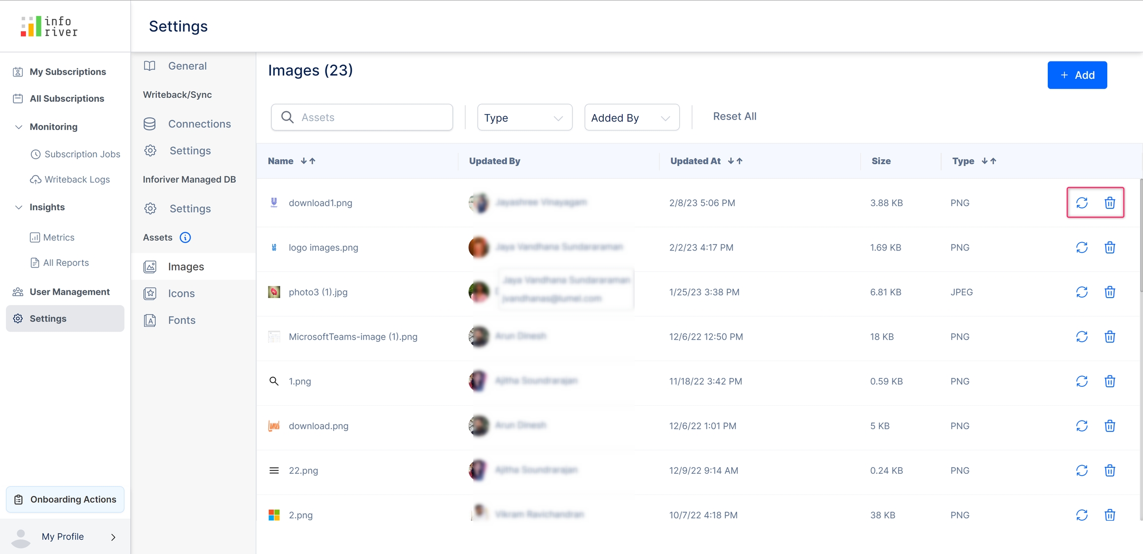 The assets settings make asset management easier by displaying all the assets (images, icons, and fonts) used in the Inforiver visual in a common dashboard. You can easily view, add, update, or delete any asset.