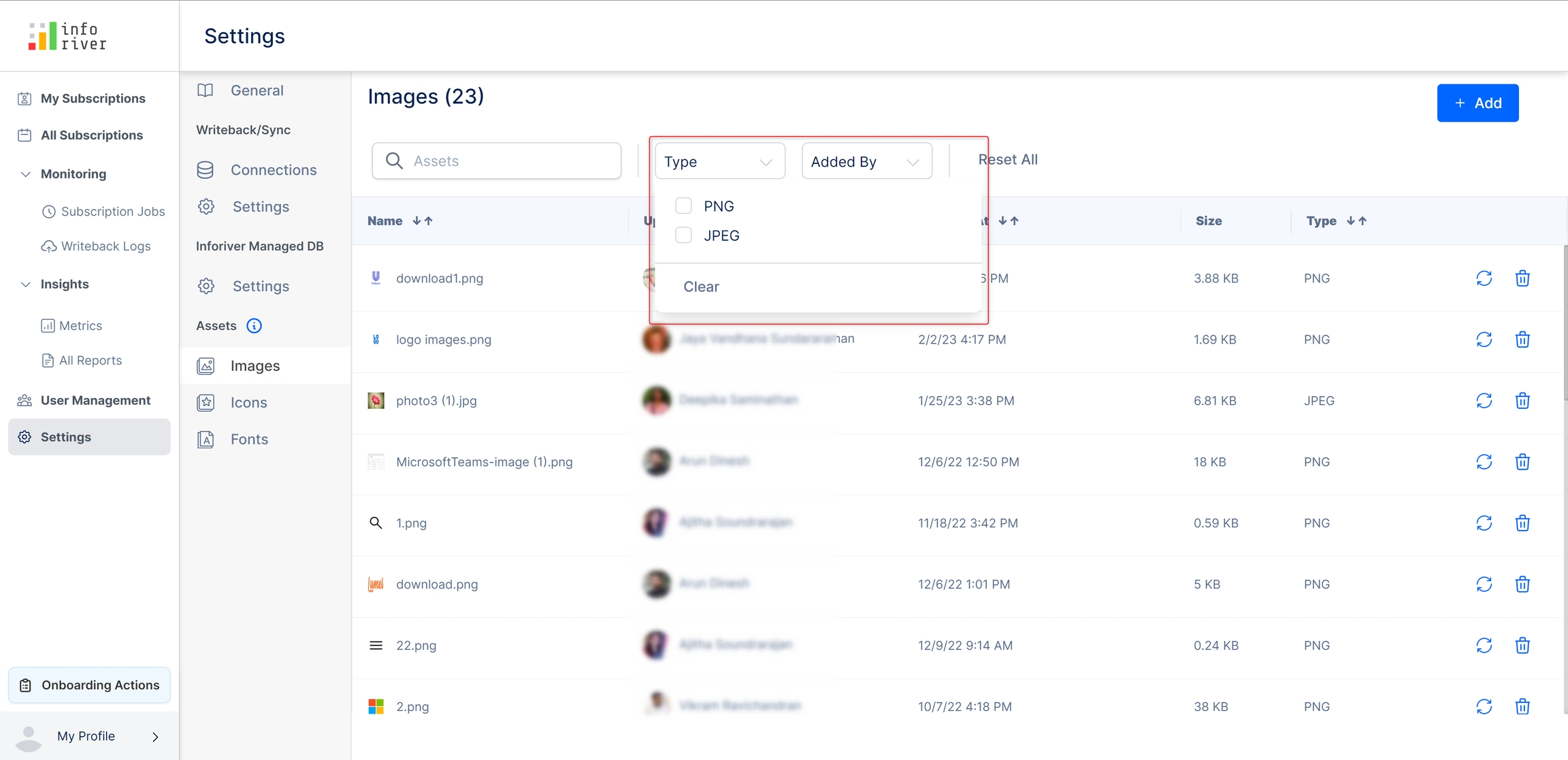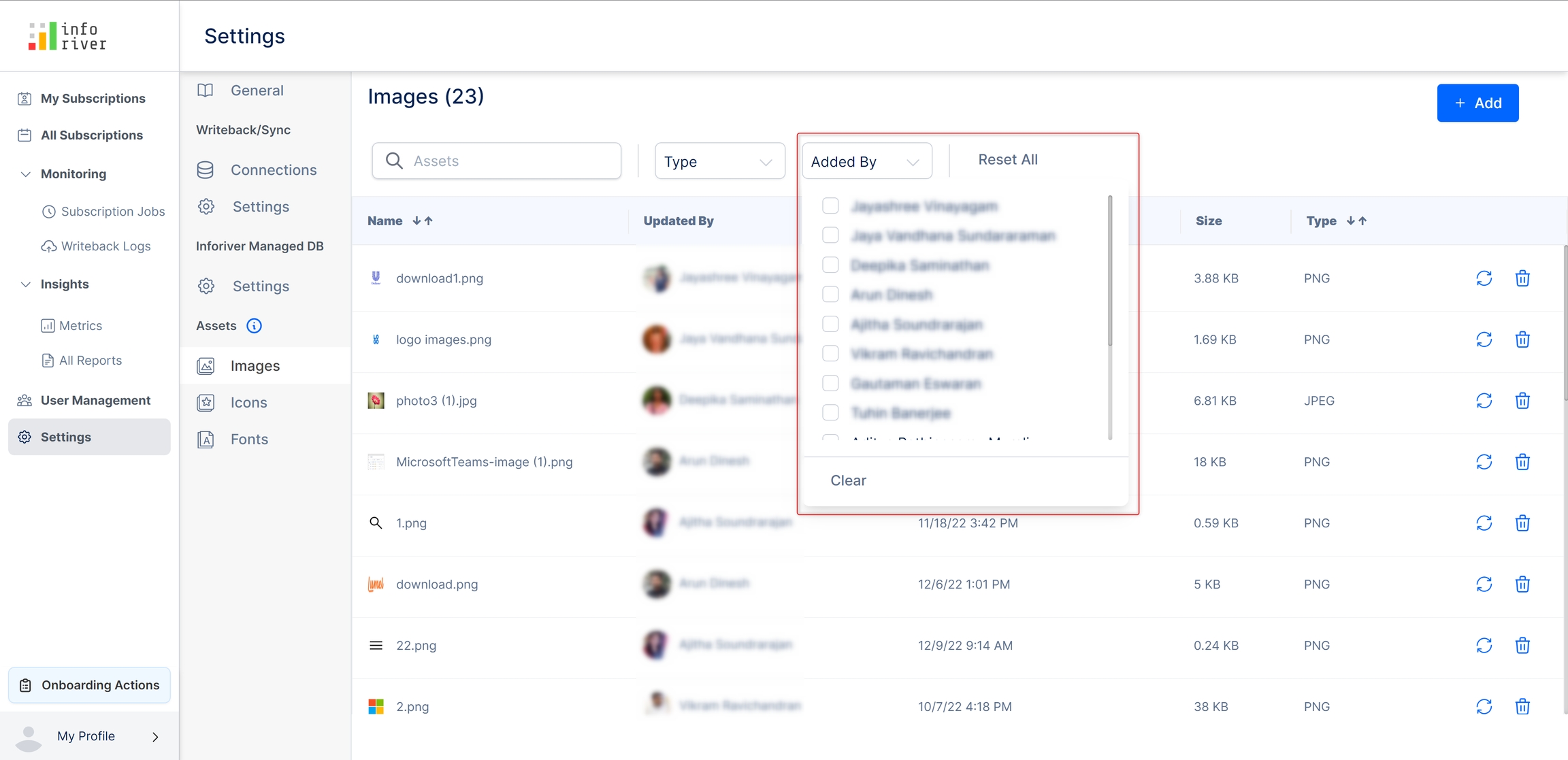 Added by - Using this drop-down you can filter the assets based on the user who added them.