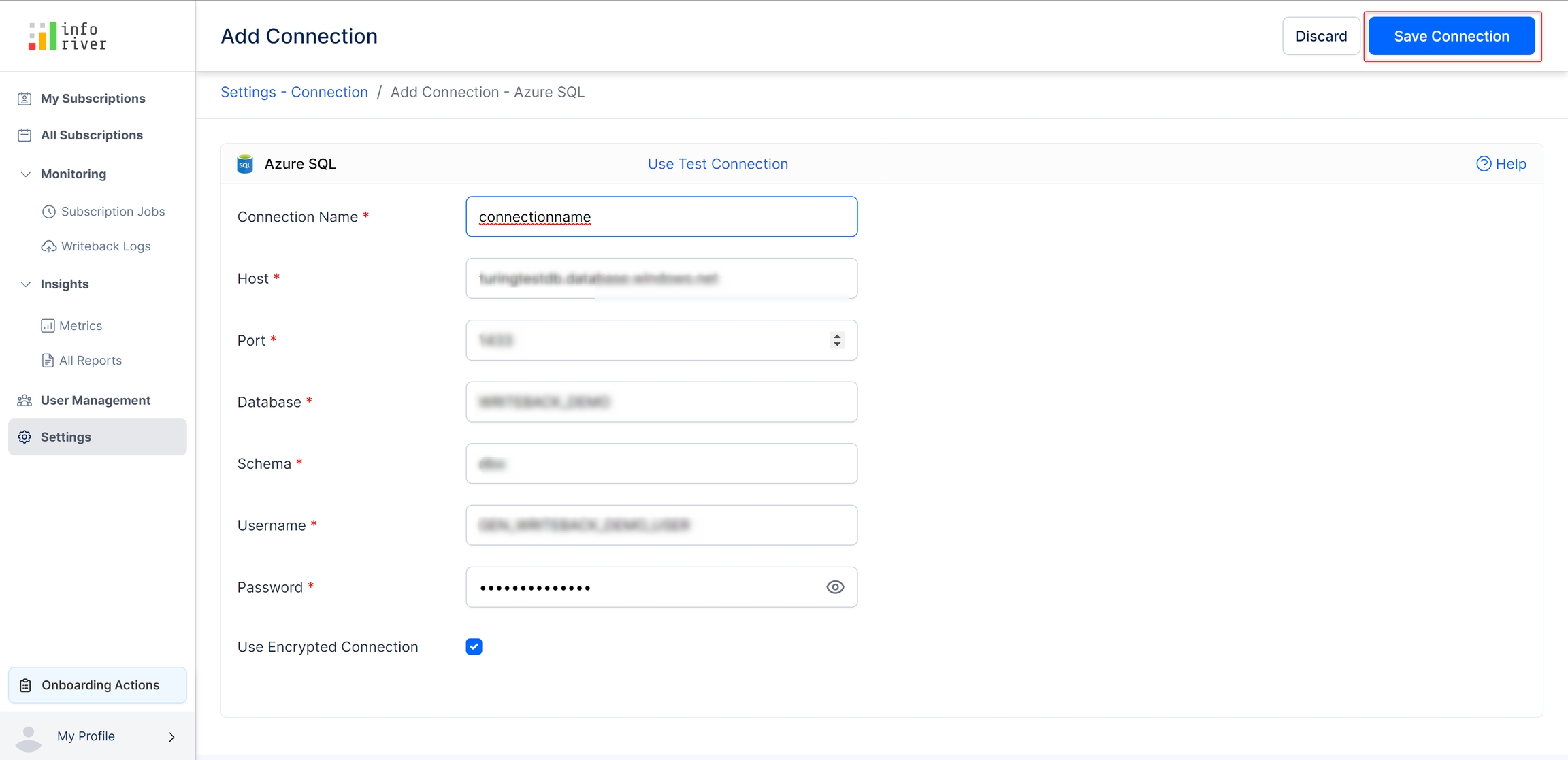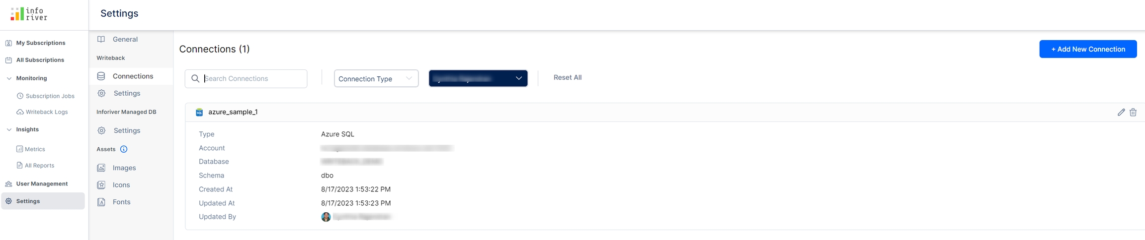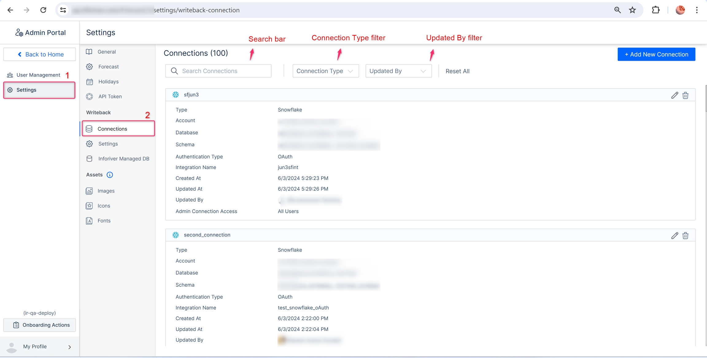 With connection settings, the administrator can view, manage, and configure all the available writeback connections.