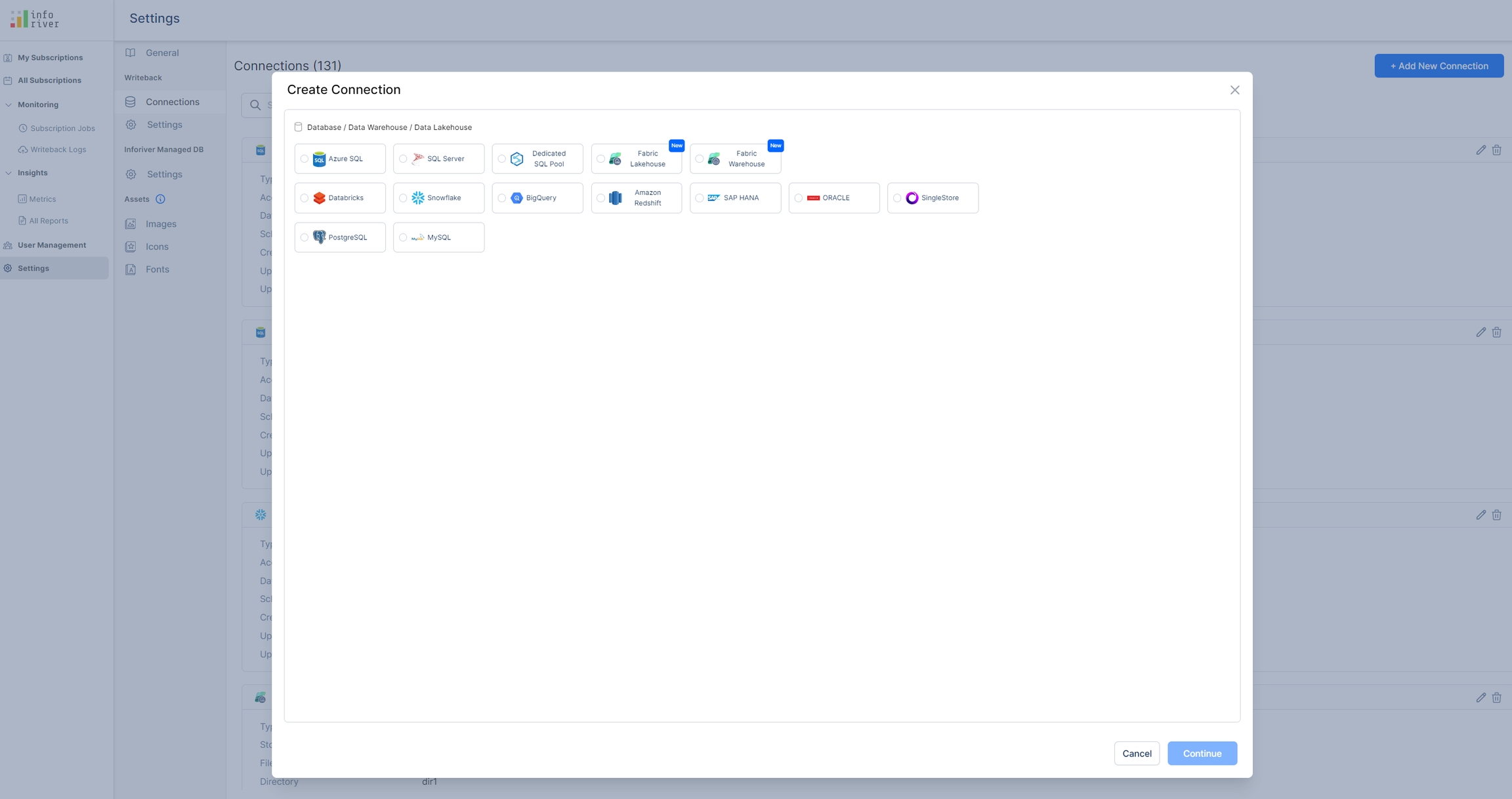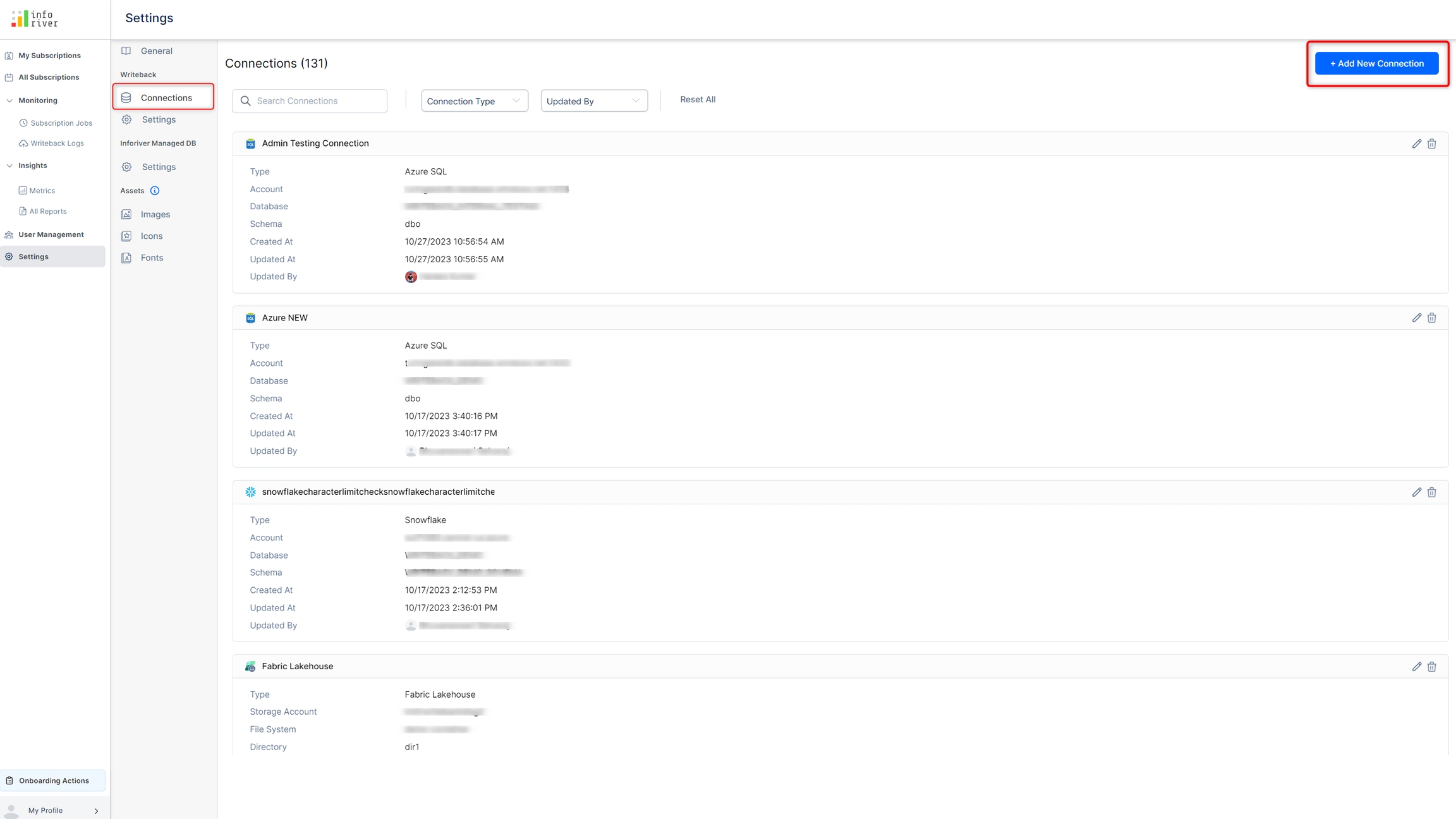 This page lists all the writeback destination connections. Inforiver provides comprehensive filters and search bars to access your connections quickly.