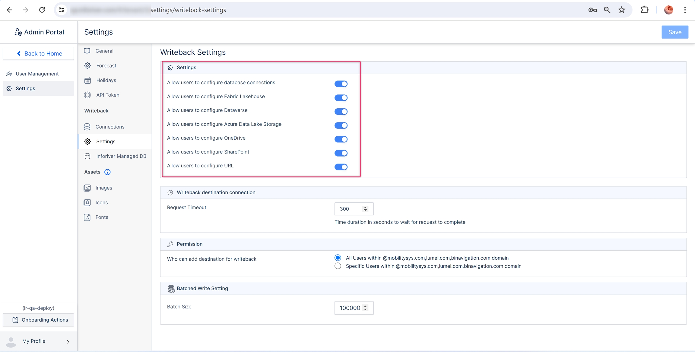The writeback settings let admins configure various access settings for the users. The admin can configure the following settings:
