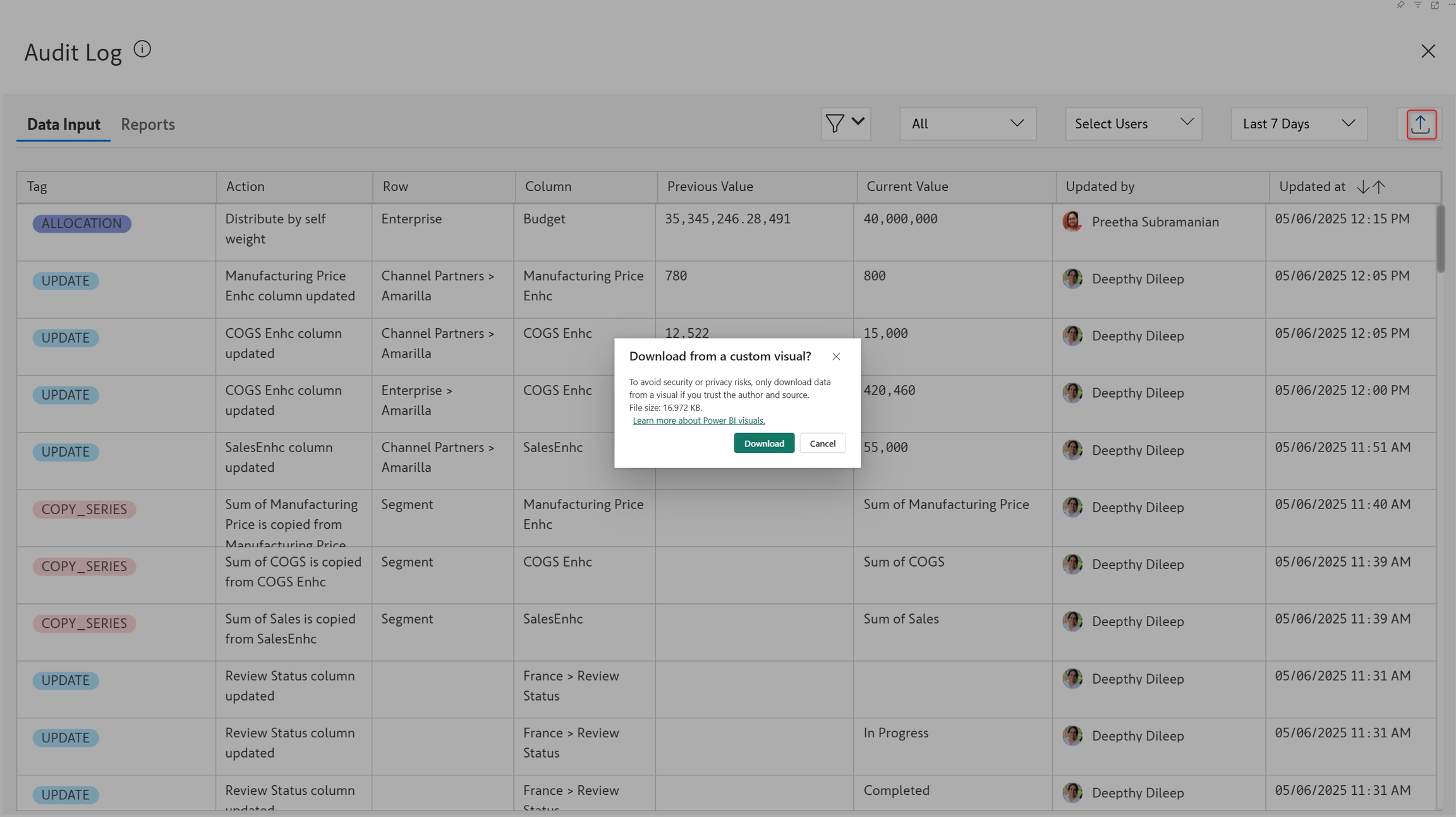 Inforiver provides an interactive, filterable, exportable, and comment-enabled audit log to track changes to your report.