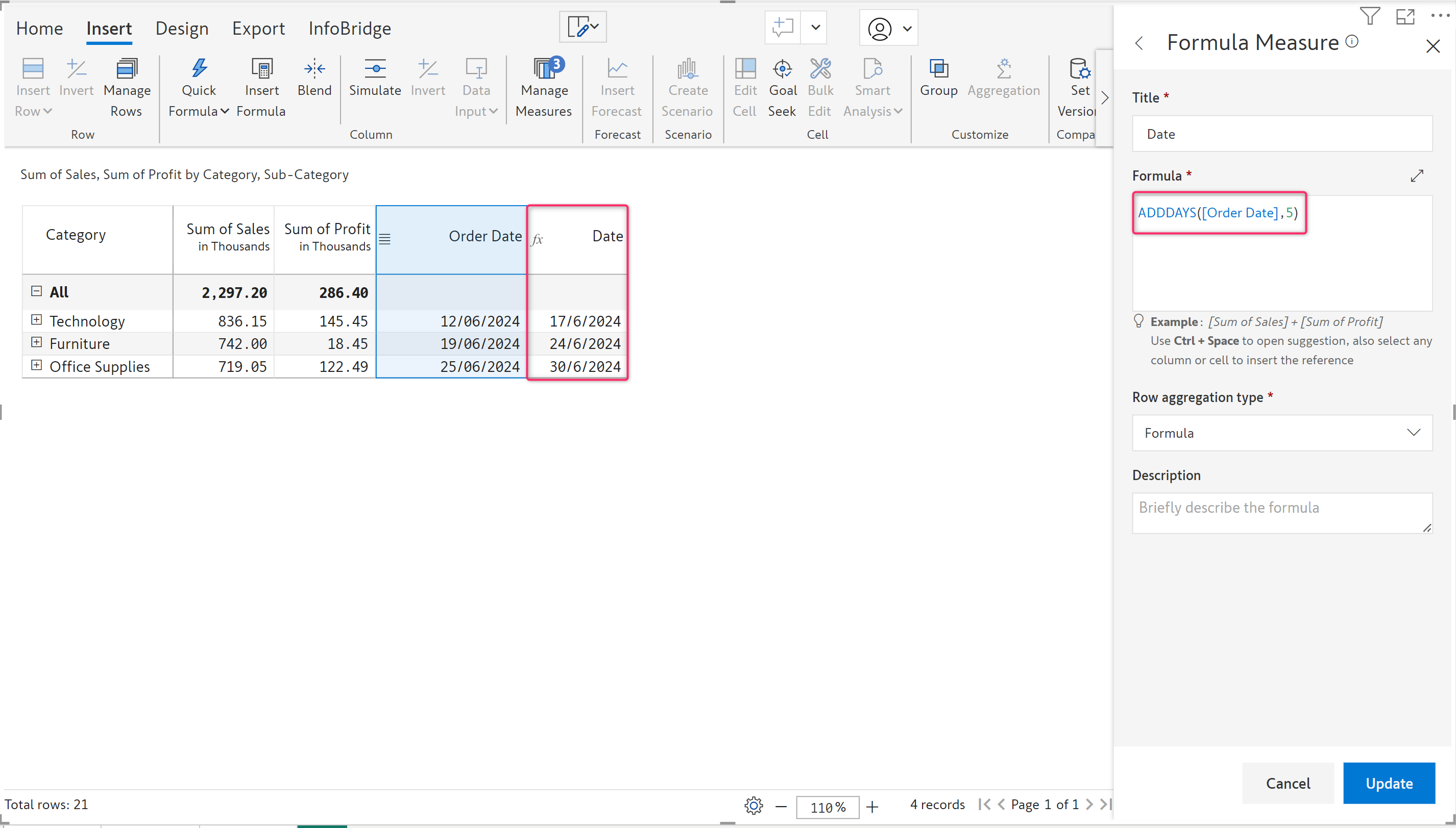 The ADDDAYS function allows you to add or subtract a specified number of days from a given date.