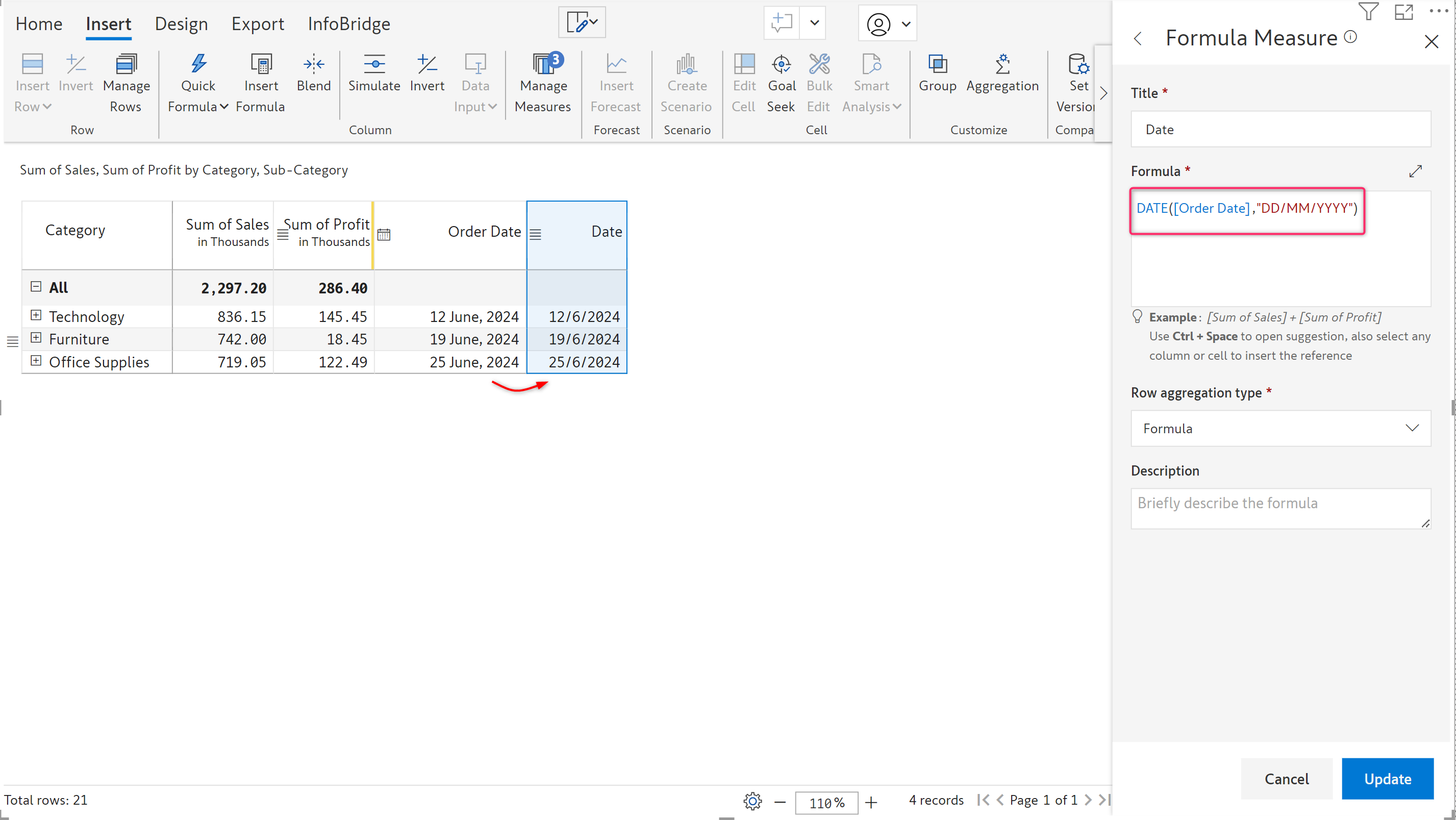 date - The input date in the form of a string. It can also be a node reference or a measure that contains the date. Required.