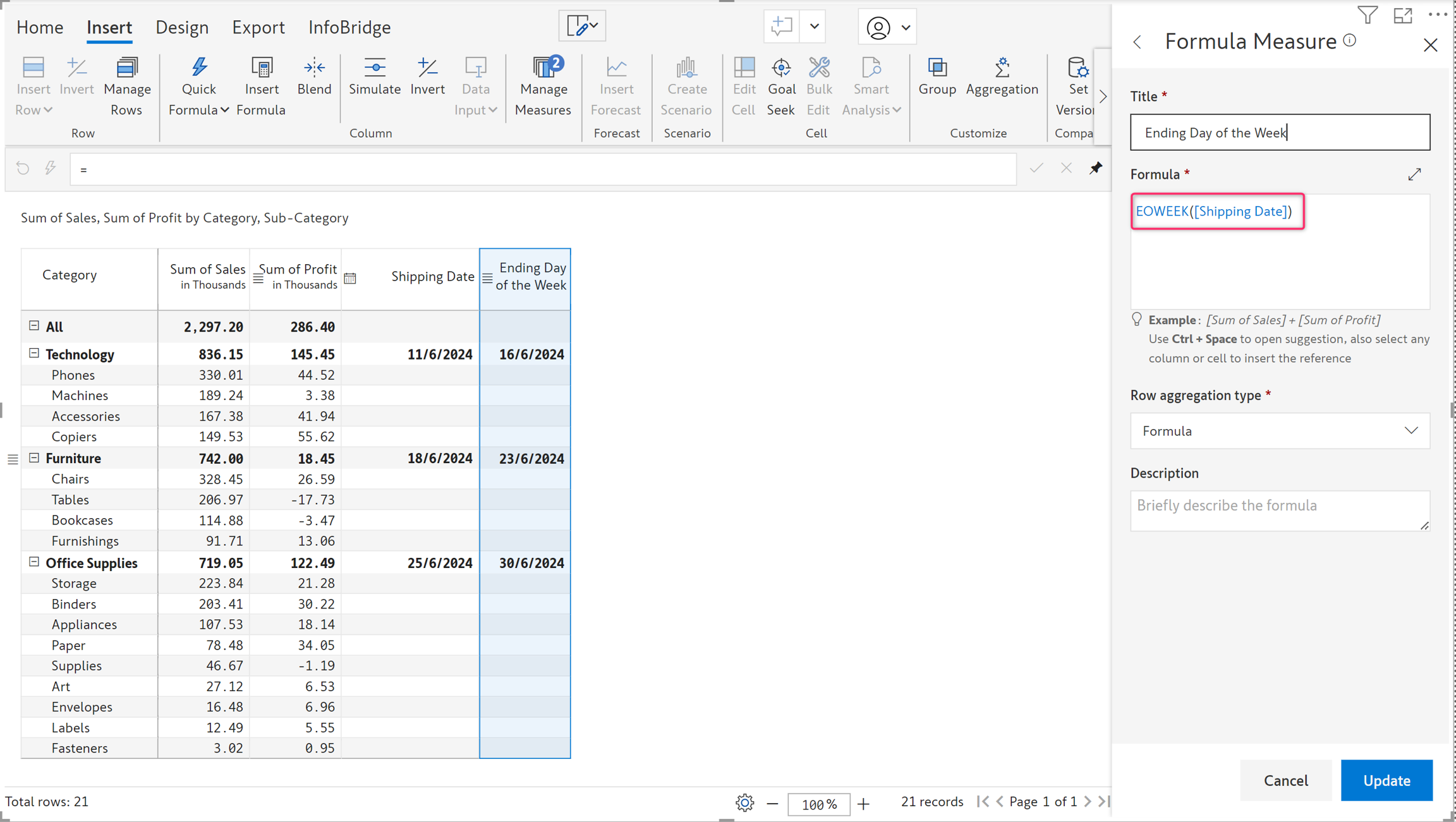 EOWEEK(date,offset)EOWEEK("05/29/2024")