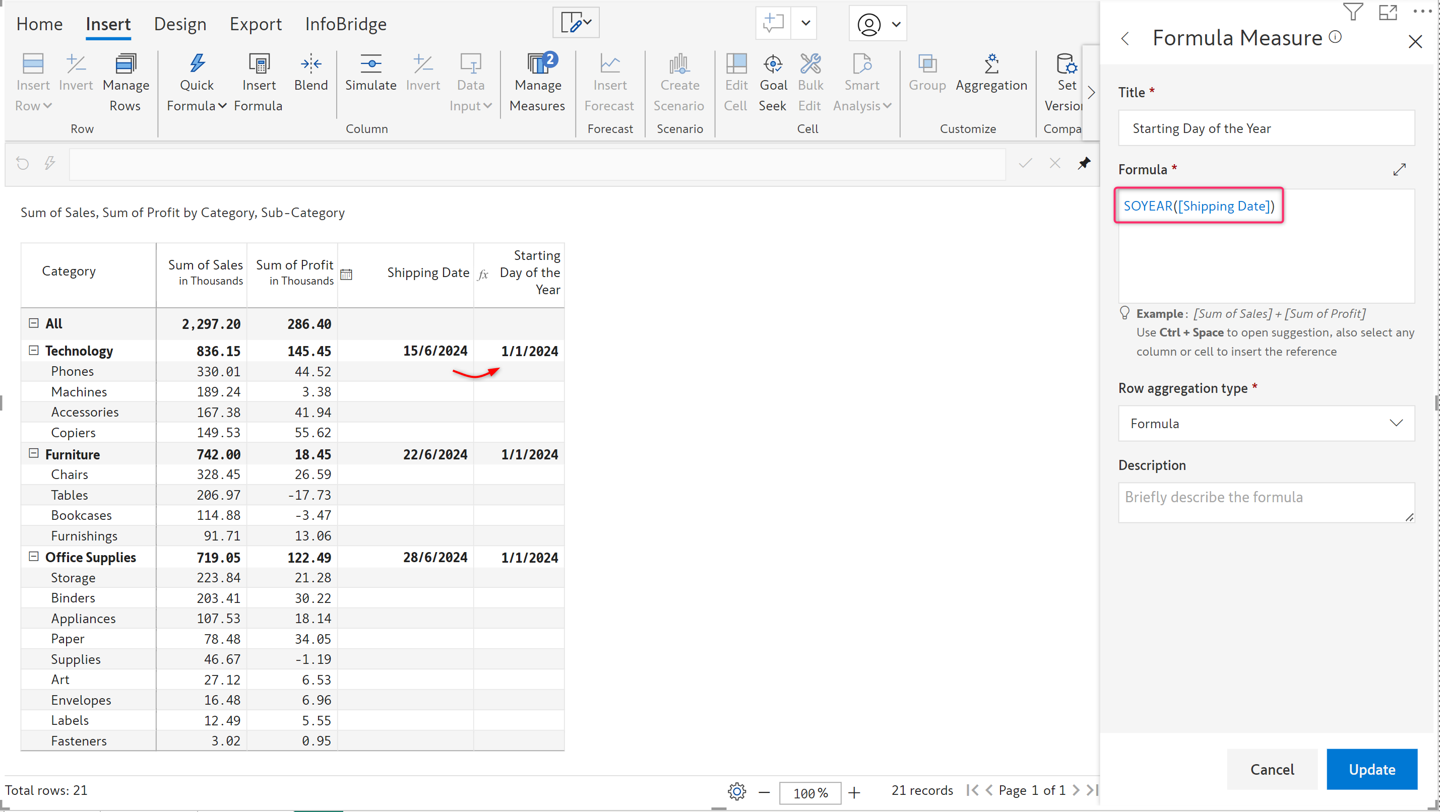 The SOYEAR function takes the date as input and returns the year's starting date. Node references and measures are also accepted as input arguments. Use [DATE.SET()](https://docs.inforiver.com/~/changes/mS6jwvARNLHpKqBa4cT9/formula-syntax/date-functions/date.set) to set the format of the output date.