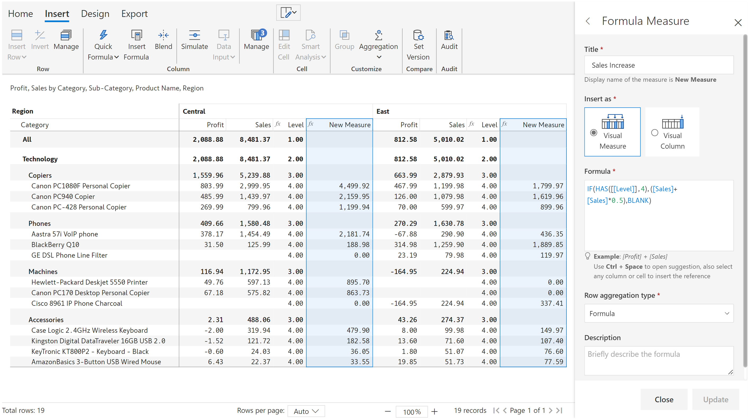 We need to check if the [level](https://docs.inforiver.com/premium-table/formula-syntax/identifiers/level) is a leaf level and increase sales by 50%. This has been achieved using the HAS identifier as shown in the below image.