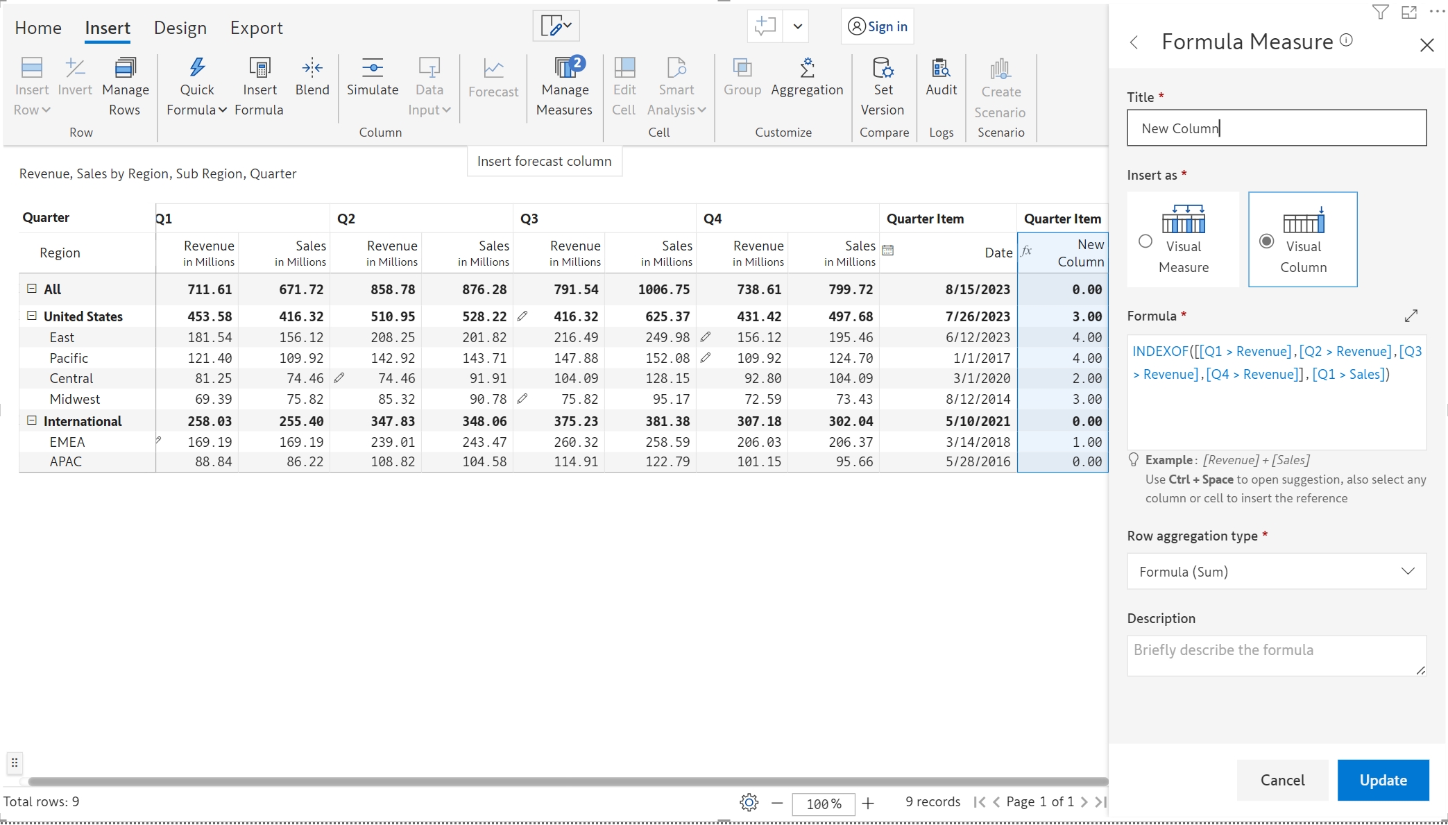 In the example below, the Indexof function is used to check whether the Revenue in any quarter is equal to the Sales for Q1.