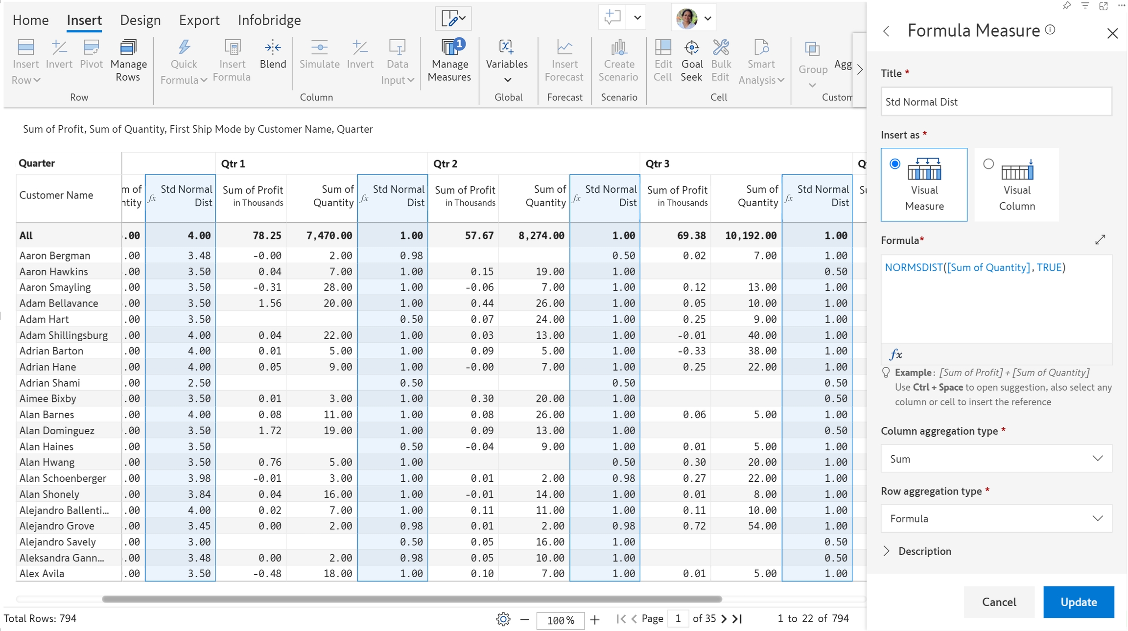 normsdist(value, cumulative)Arguments