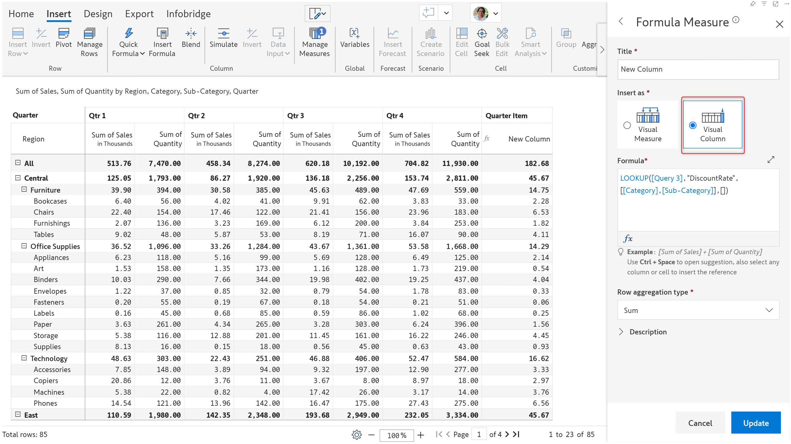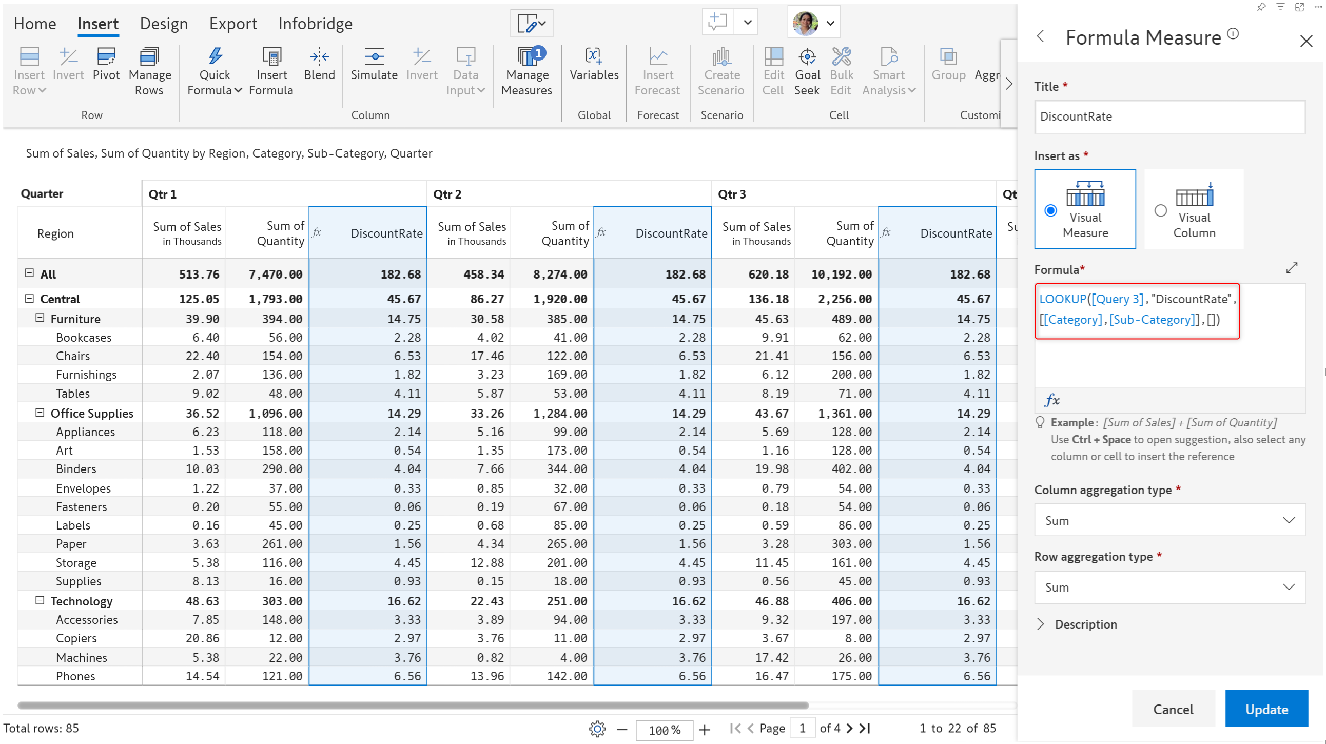 <figure><img src="https://content.gitbook.com/content/sB9HAei8v4FfKkH9M4gw/blobs/muEseyTMV8APanv5IVew/image.png" alt=""><figcaption><p>LOOKUP function for specific row and column dimension categories</p></figcaption></figure>