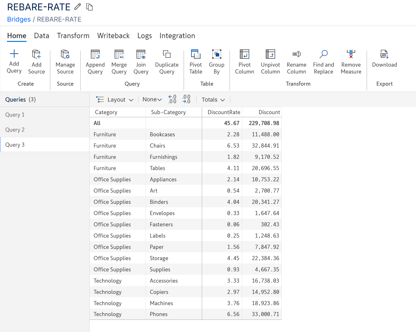 The bridge contains a flat discount rate for product categories.
