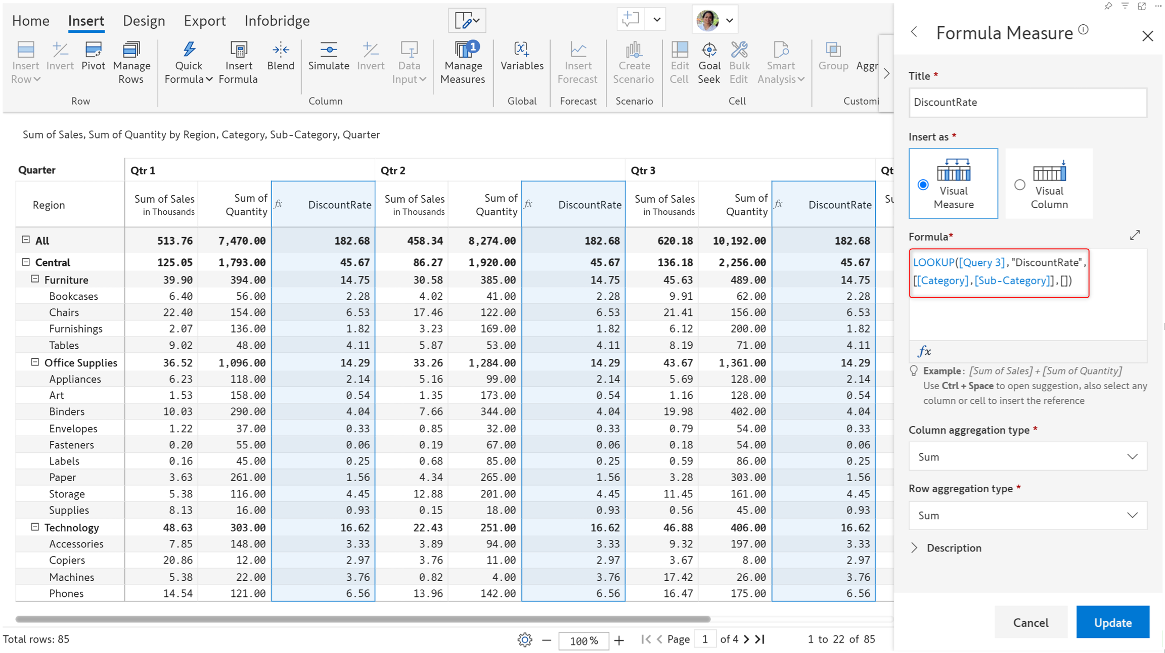 LOOKUP(queryIdentifier:string,measure:string,rows:[string],columns:[string])