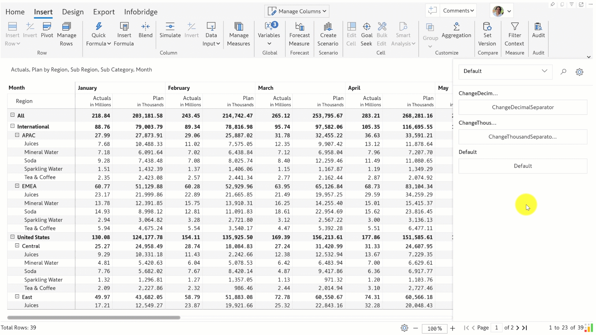 Use the SEPARATOR function to set custom delimiters for decimals and thousands.