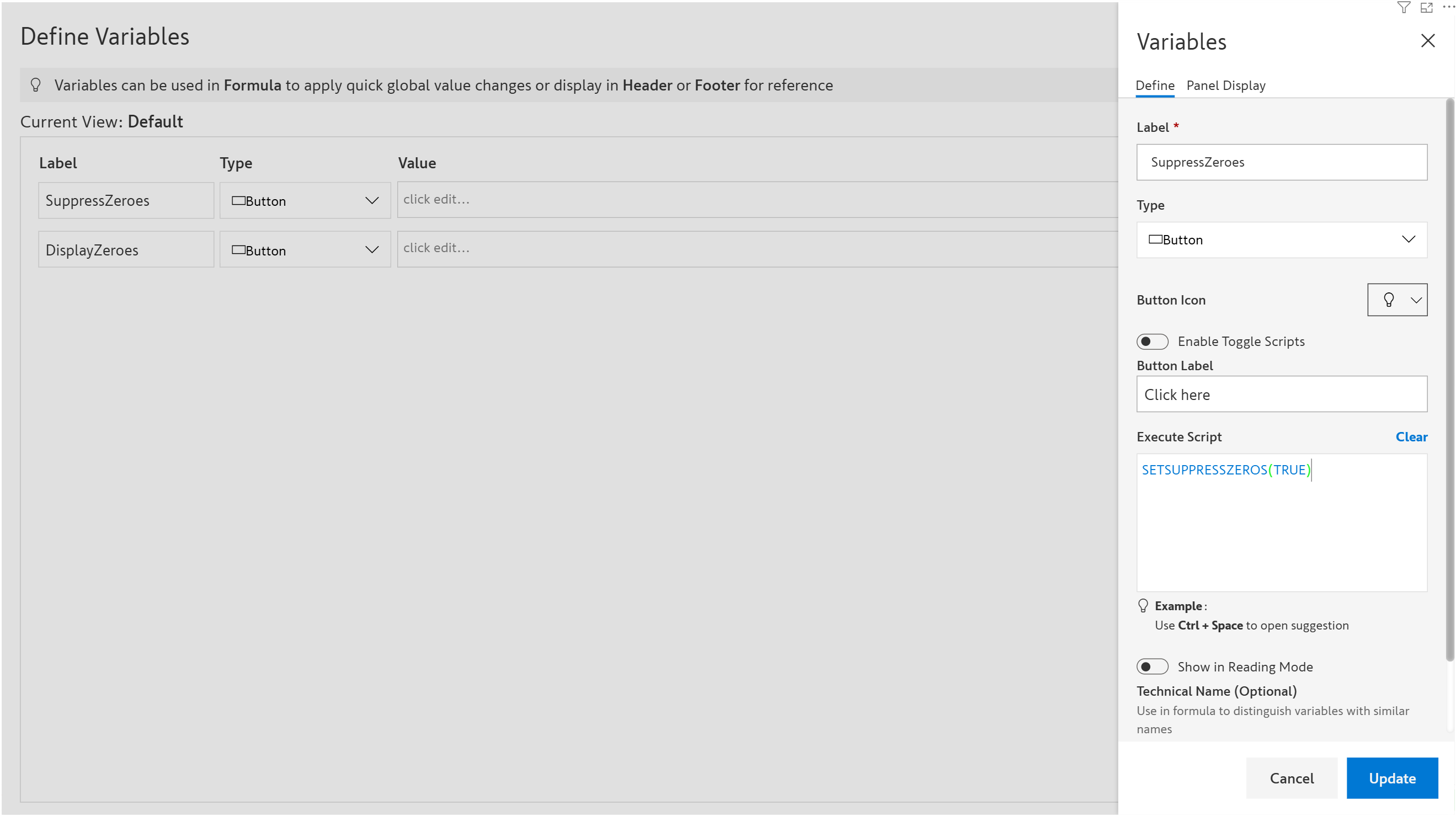 <figure><img src="https://content.gitbook.com/content/sB9HAei8v4FfKkH9M4gw/blobs/6gtek3eofnfSoyvLfs4k/image.png" alt=""><figcaption><p>Set suppress zeroes</p></figcaption></figure>