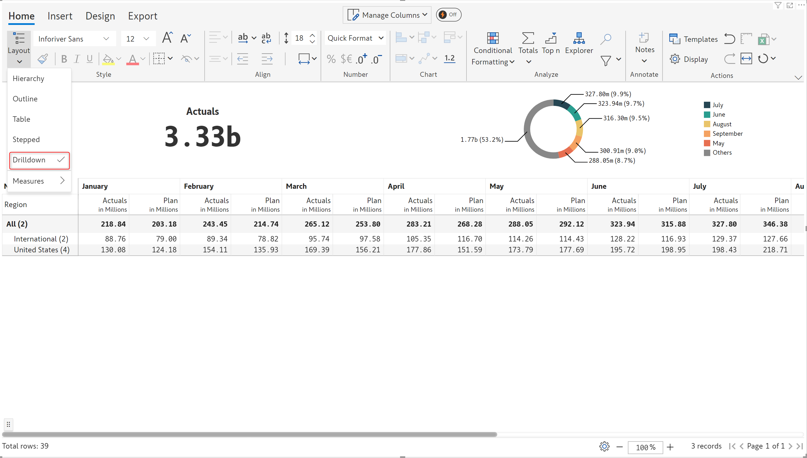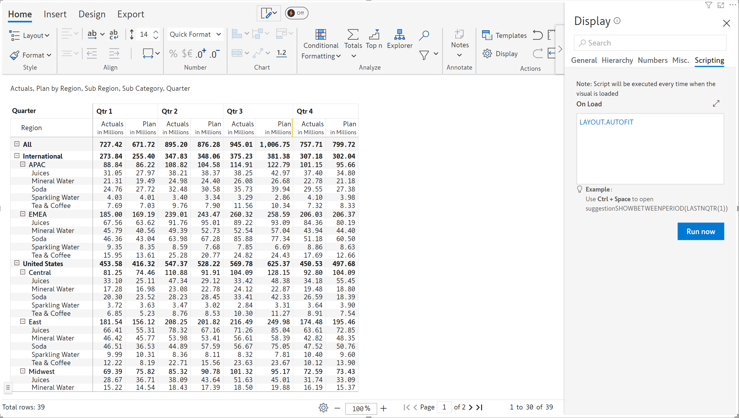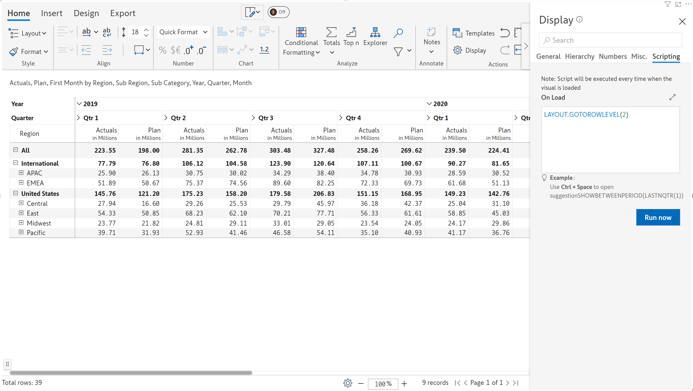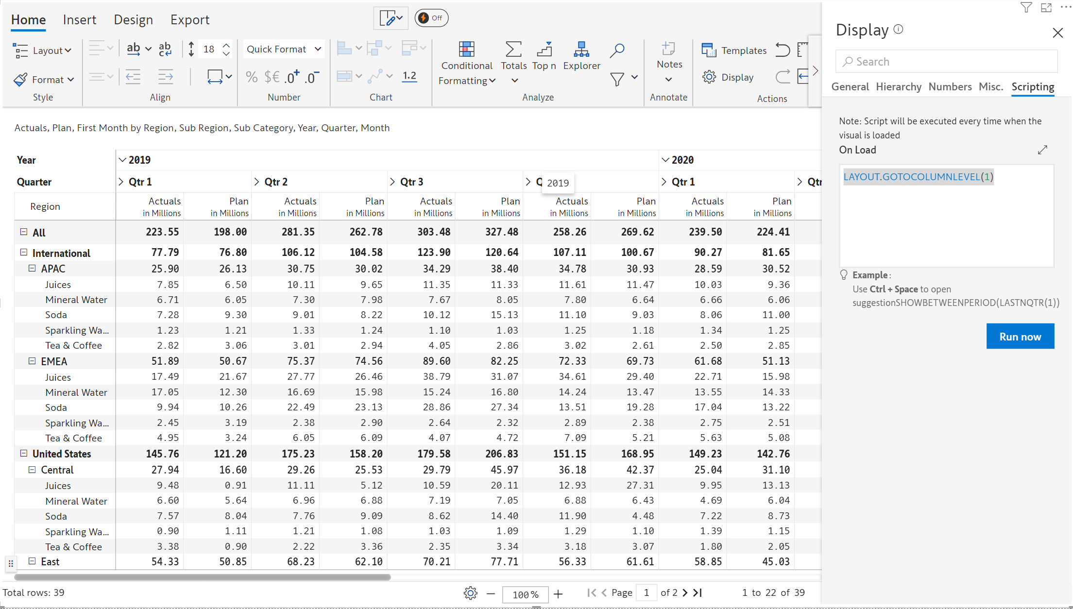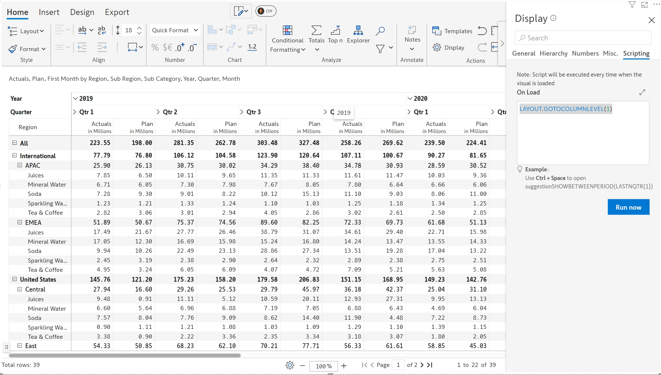 LAYOUT.GOTOROWLEVEL(2) #Expands to the third level of the column hierarchy