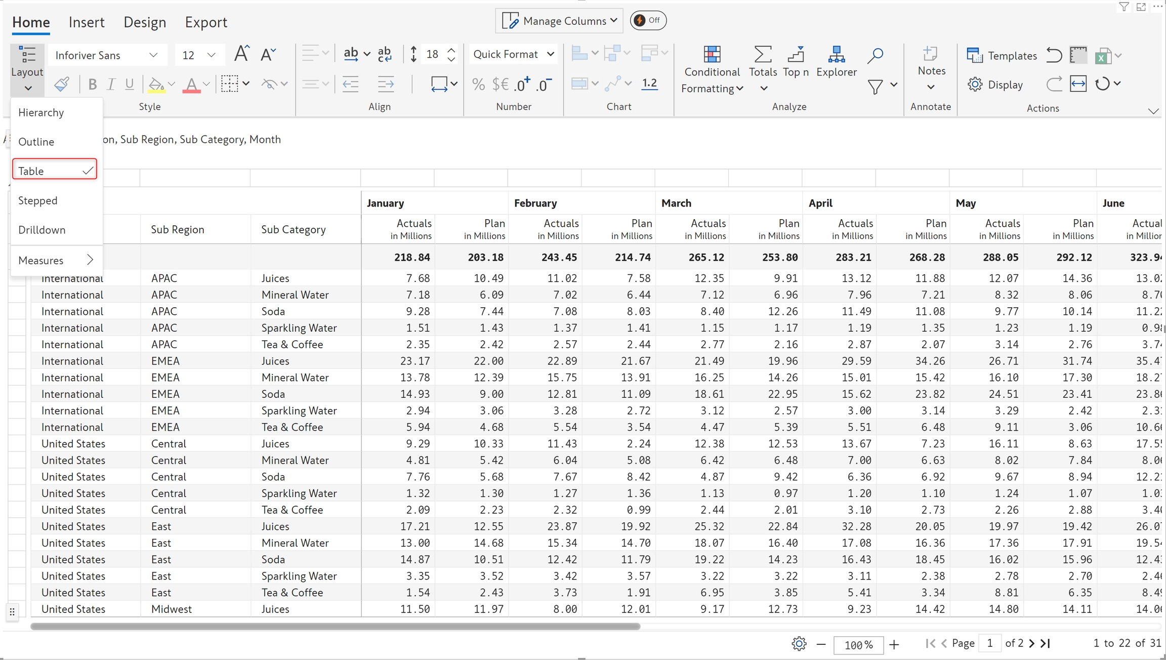 LAYOUT.GOTOCOLUMNLEVEL(1) #Expands to the second level of the column hierarchy