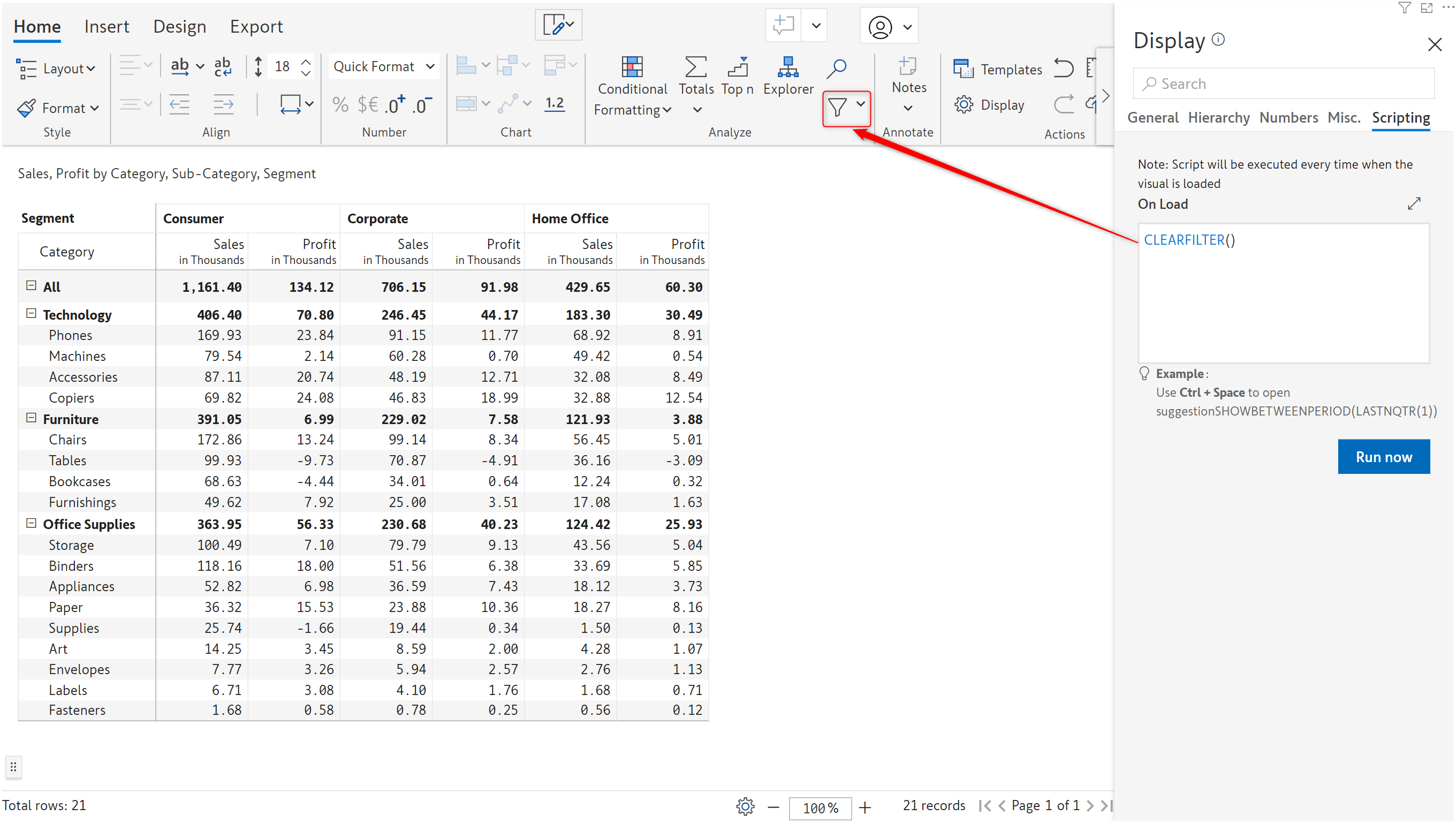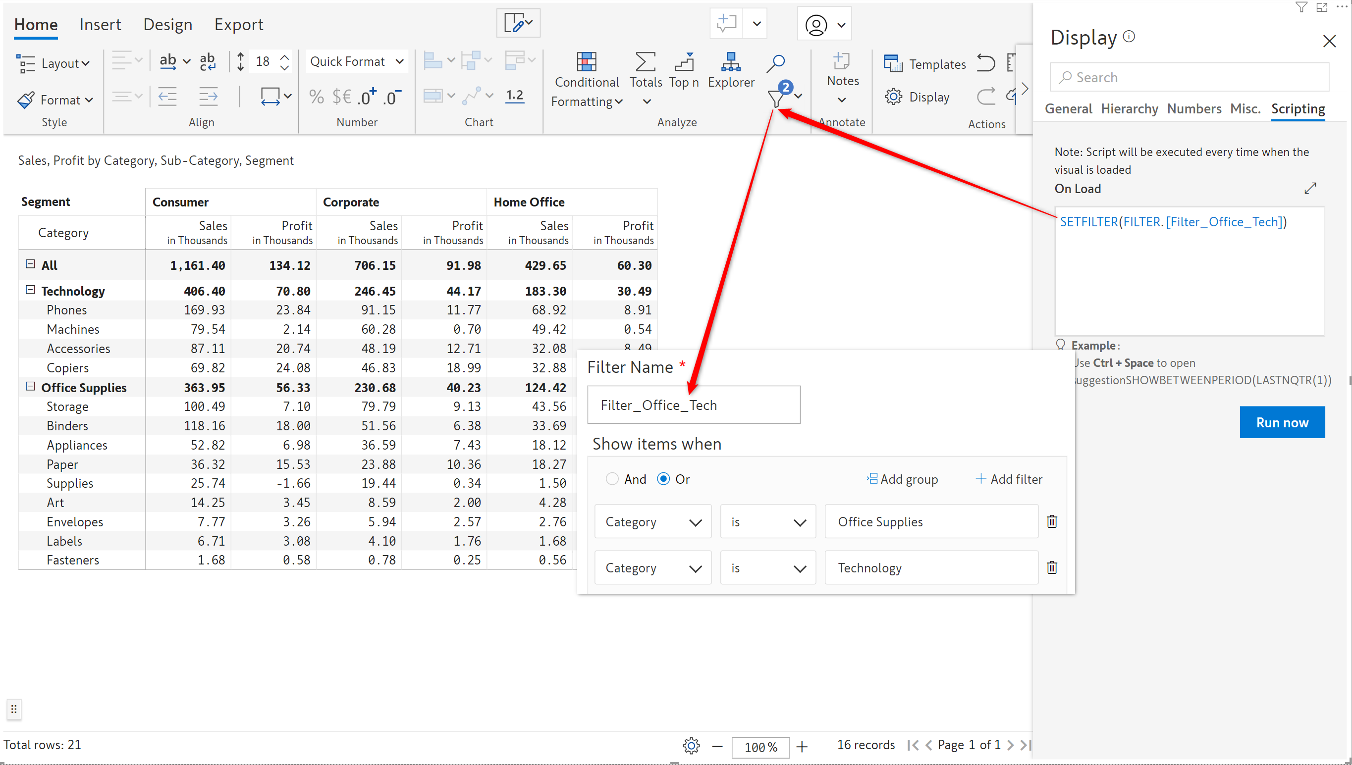 SETFILTER(FILTER.[Filter_Office_Tech]) #Applies the specified filter