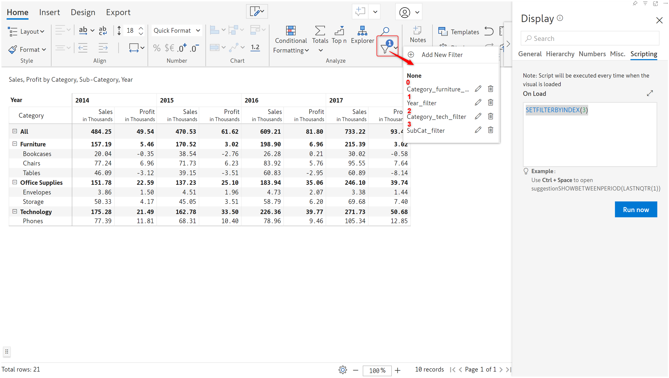 Instead of specifying the filter name, you can set a filter using its index. The first filter that is created will have an index value of 0.