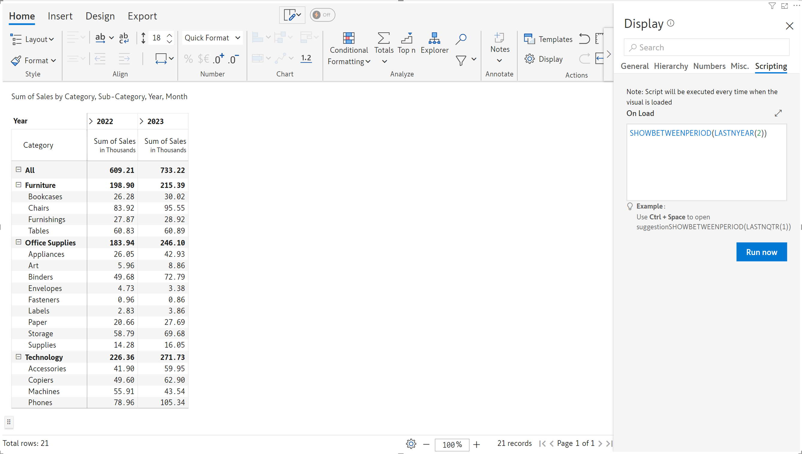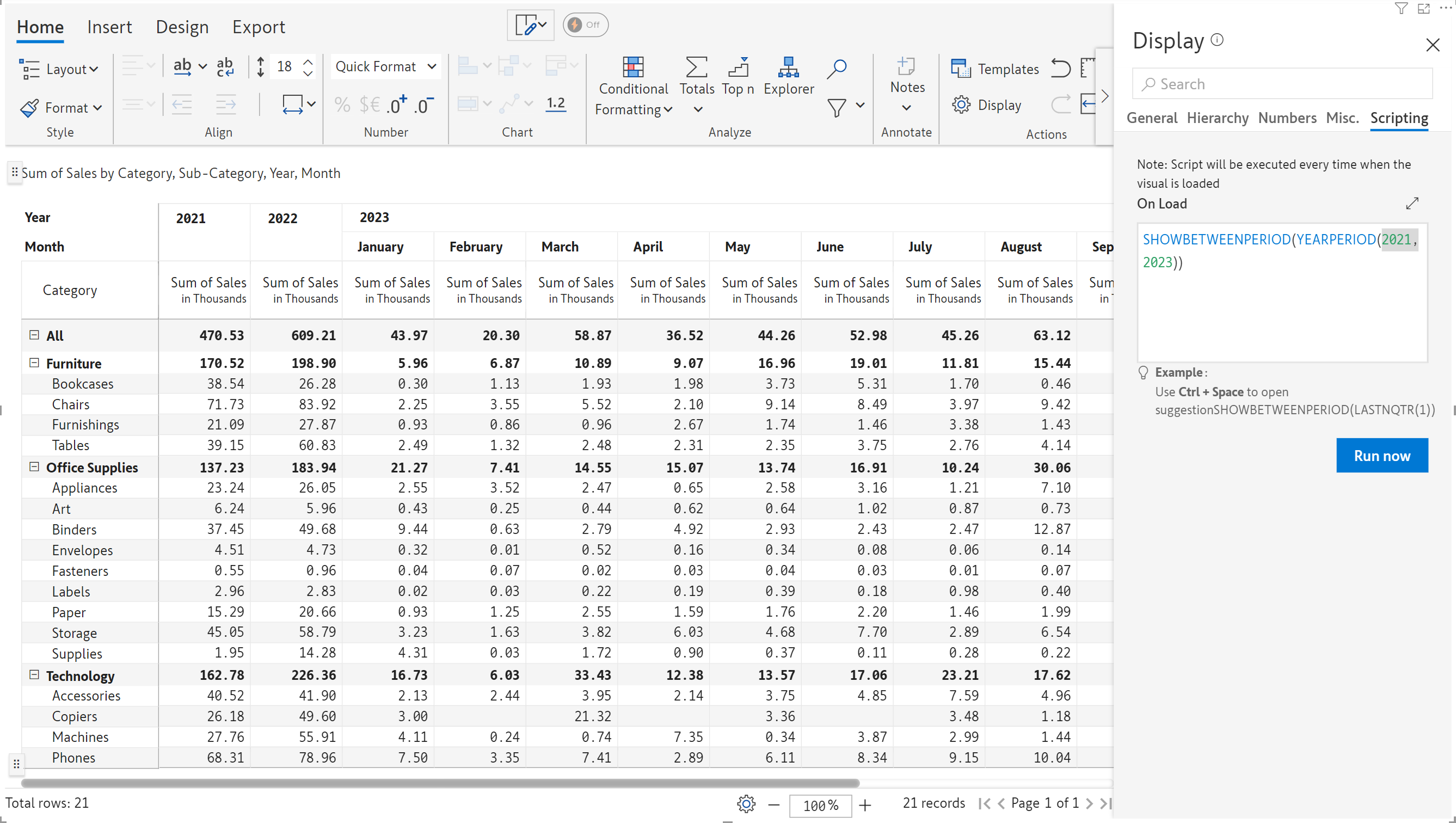 SHOWBETWEENPERIOD(YEARPERIOD(2021,2023)) #Displays the data between 2021 and 2023