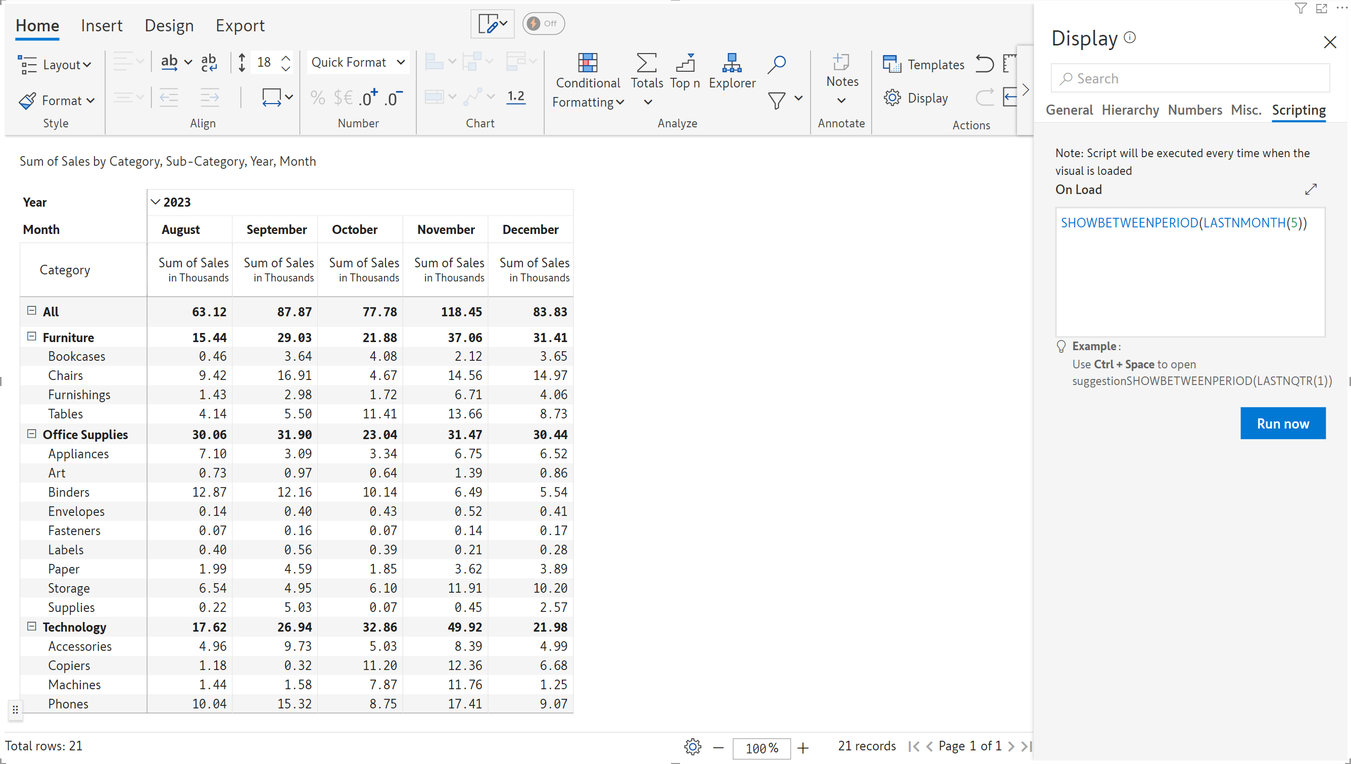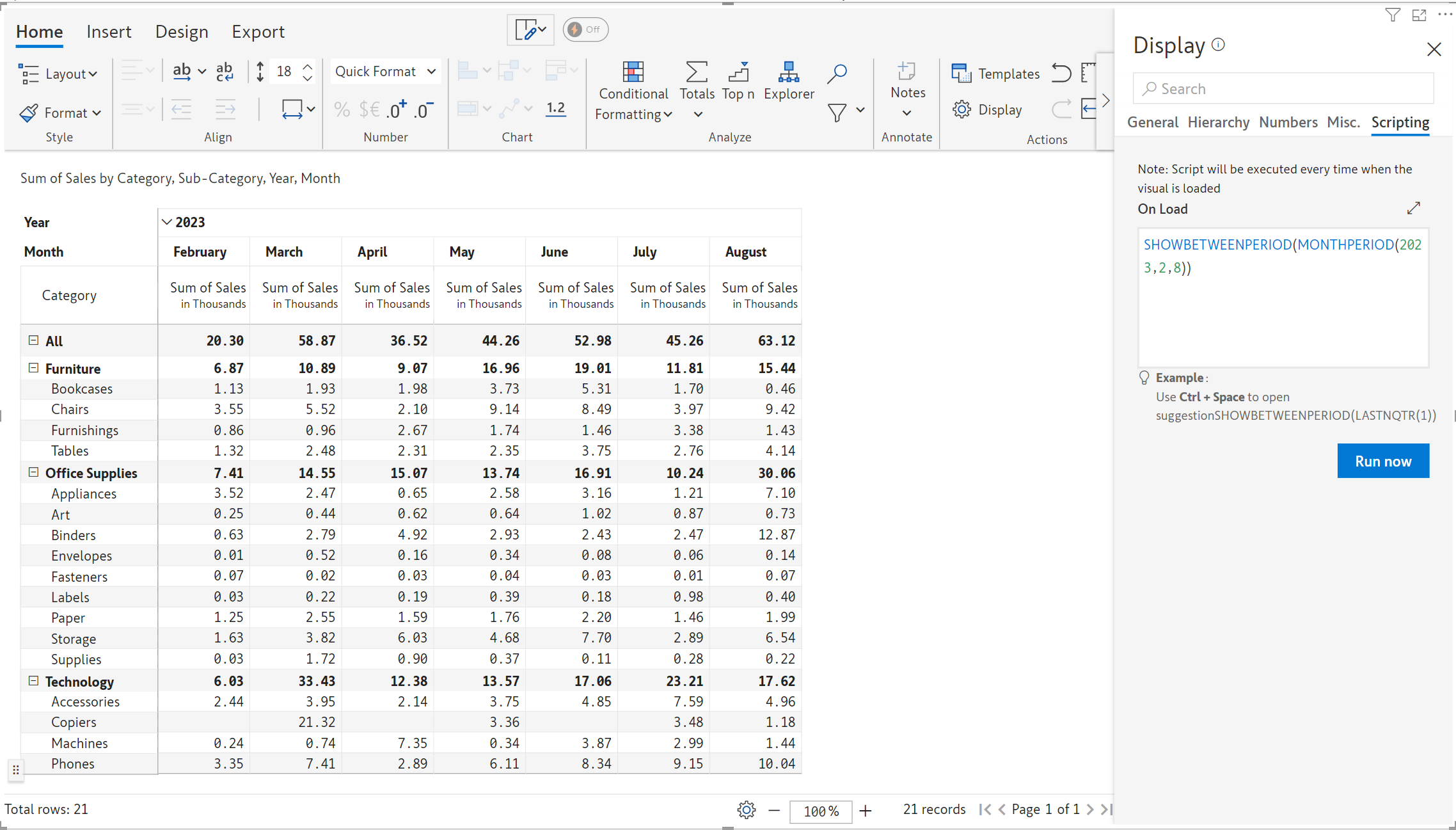 SHOWBETWEENPERIOD(MONTHPERIOD(2023,2,8)) #Displays the 2023 data between Feb and August