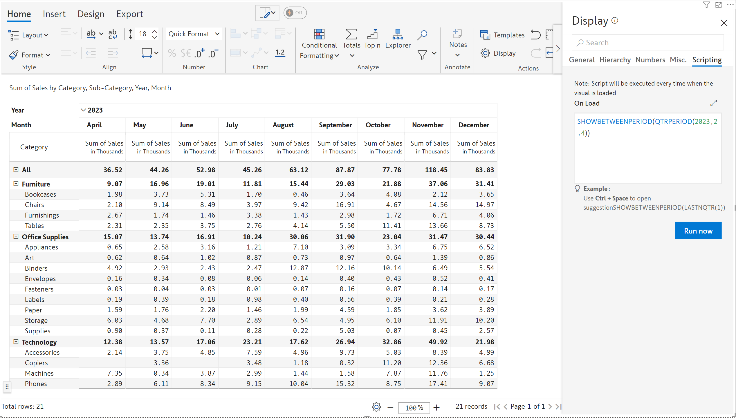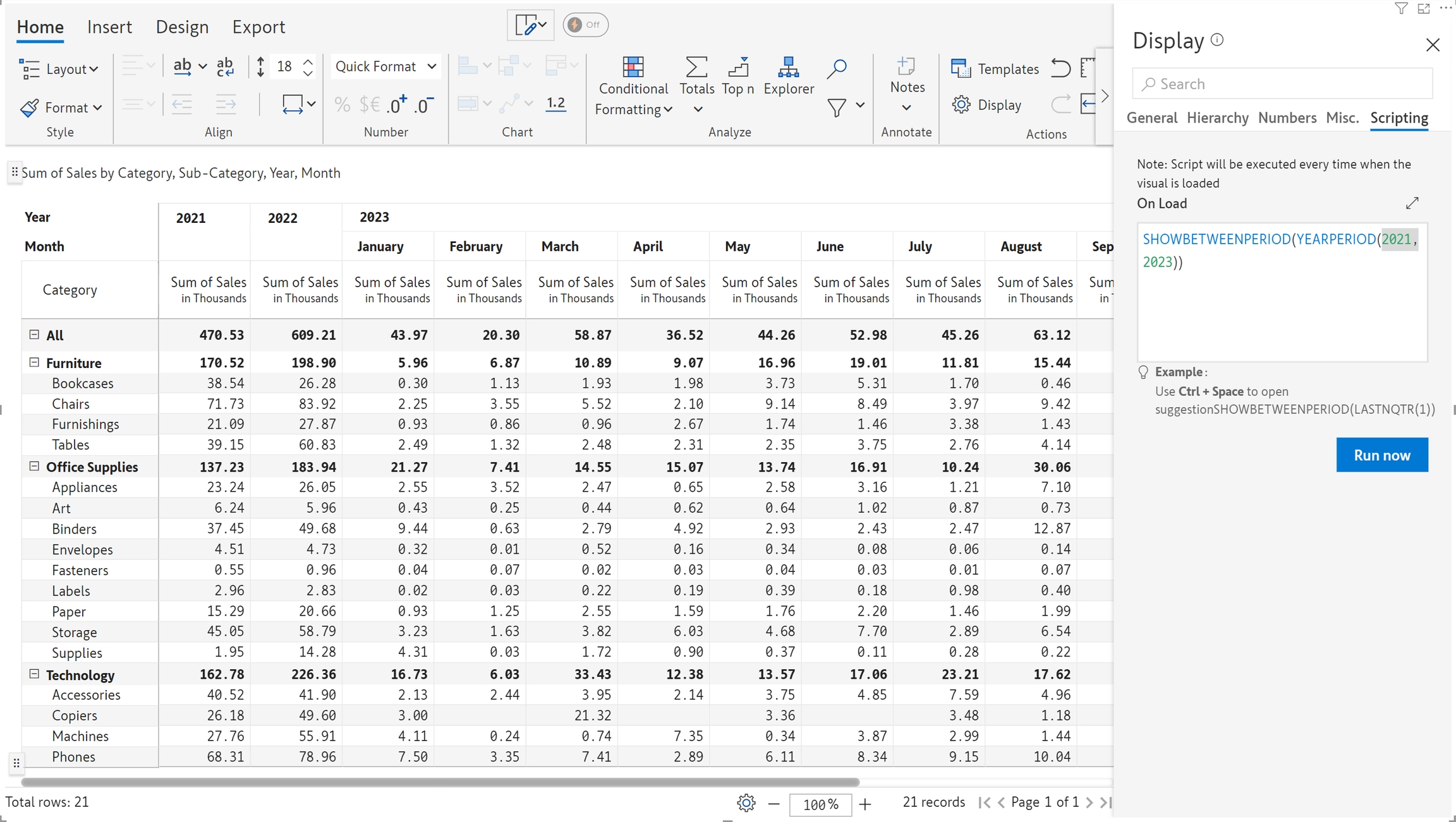 SHOWBETWEENPERIOD(YEARPERIOD(2023)) #Displays the data for 2023