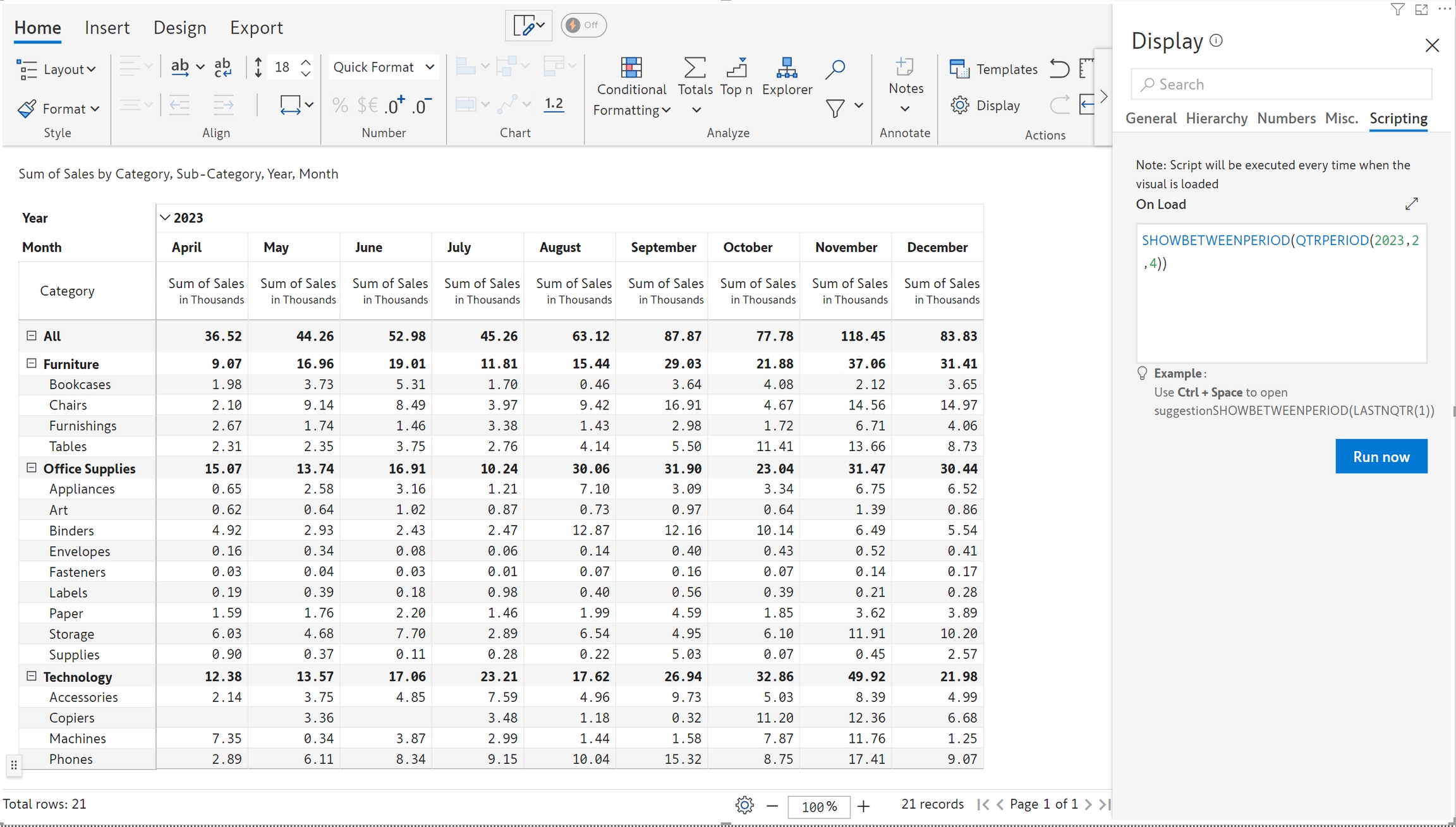 The SHOWBETWEENPERIOD(MONTHPERIOD) function can be used to display data for a particular month or a range of months.