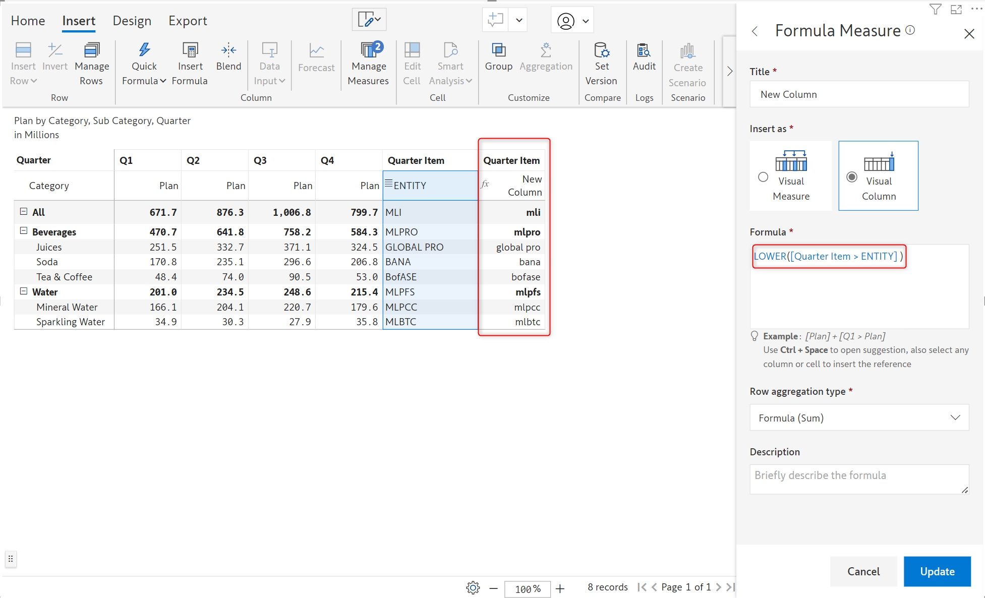 The LOWER function converts a text string into lowercase. Node references are also accepted as arguments.