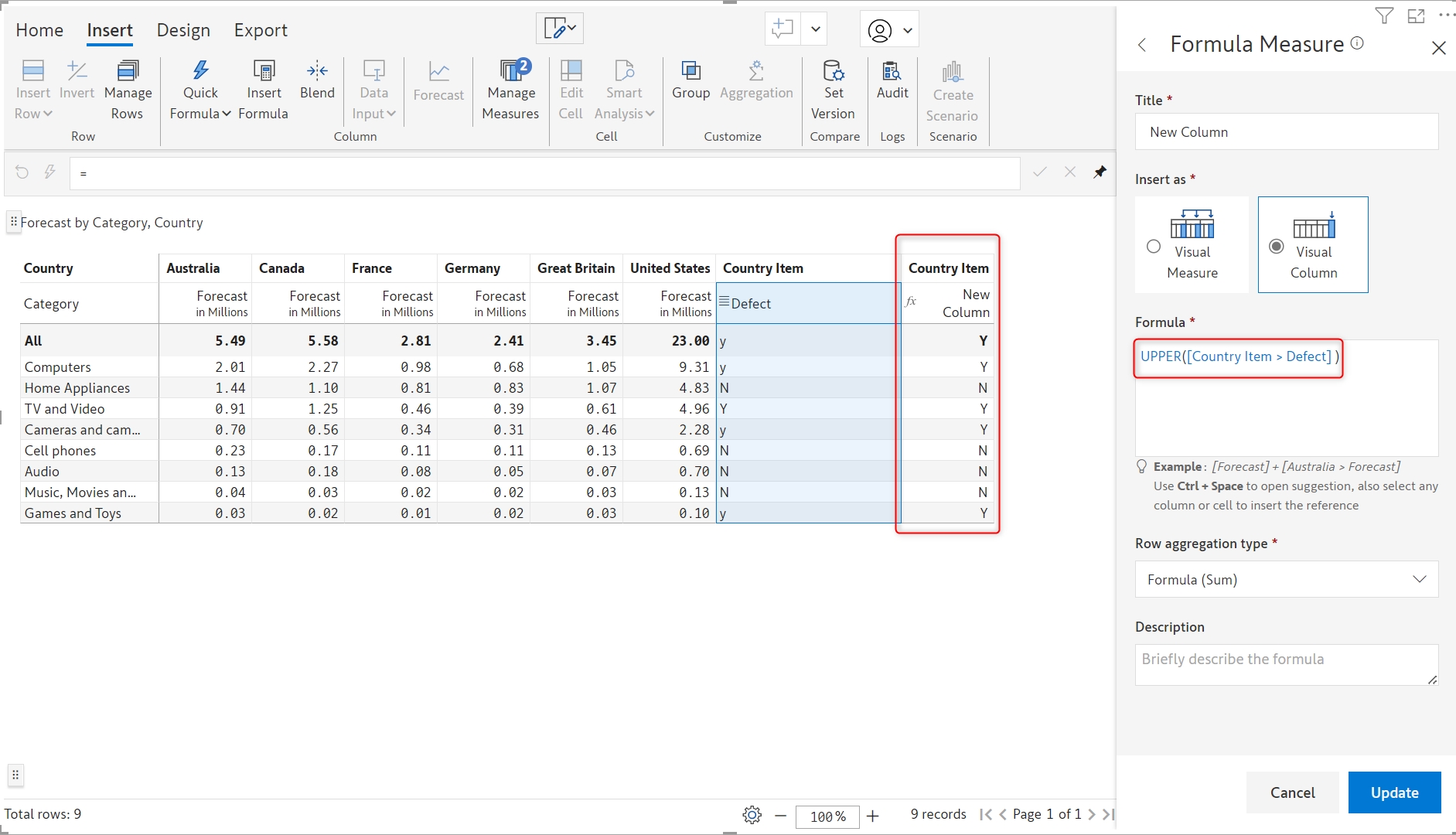 The UPPER function converts a text string into uppercase. Node references are also accepted as arguments.