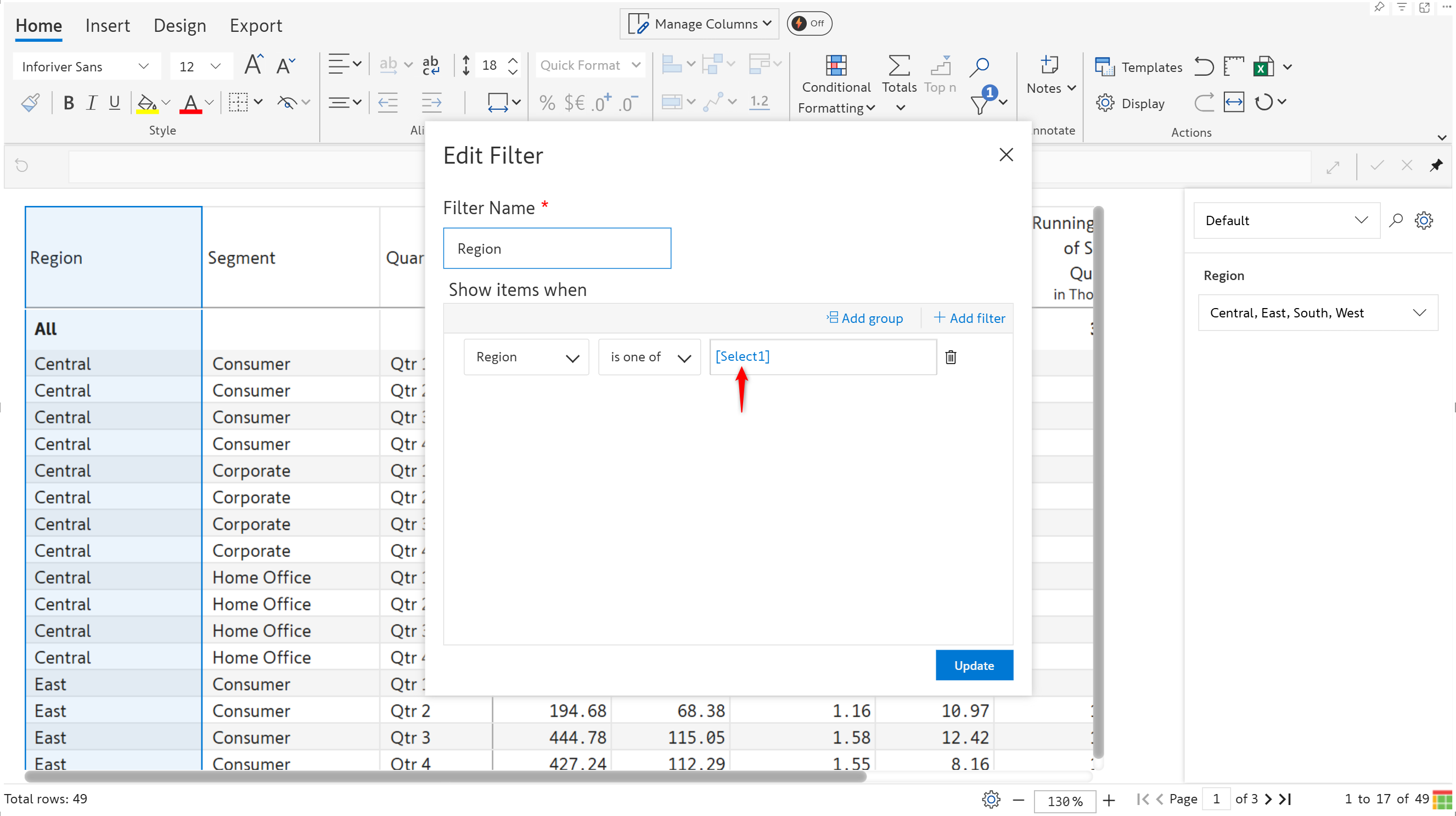2.1. Filter based on option selection
