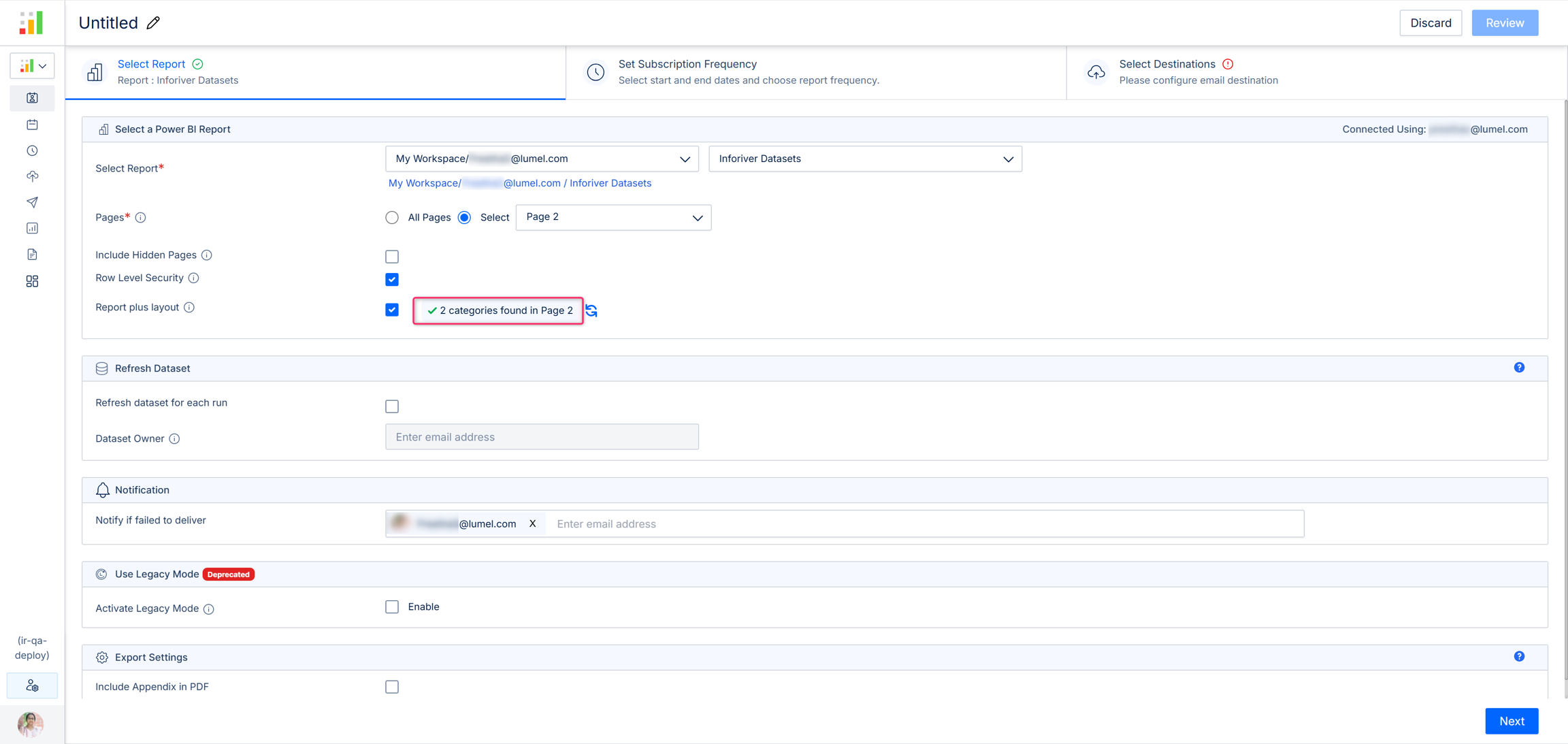 Once you select 'Report plus layout', the scheduler automatically detects the number of categories present in the report page selected.