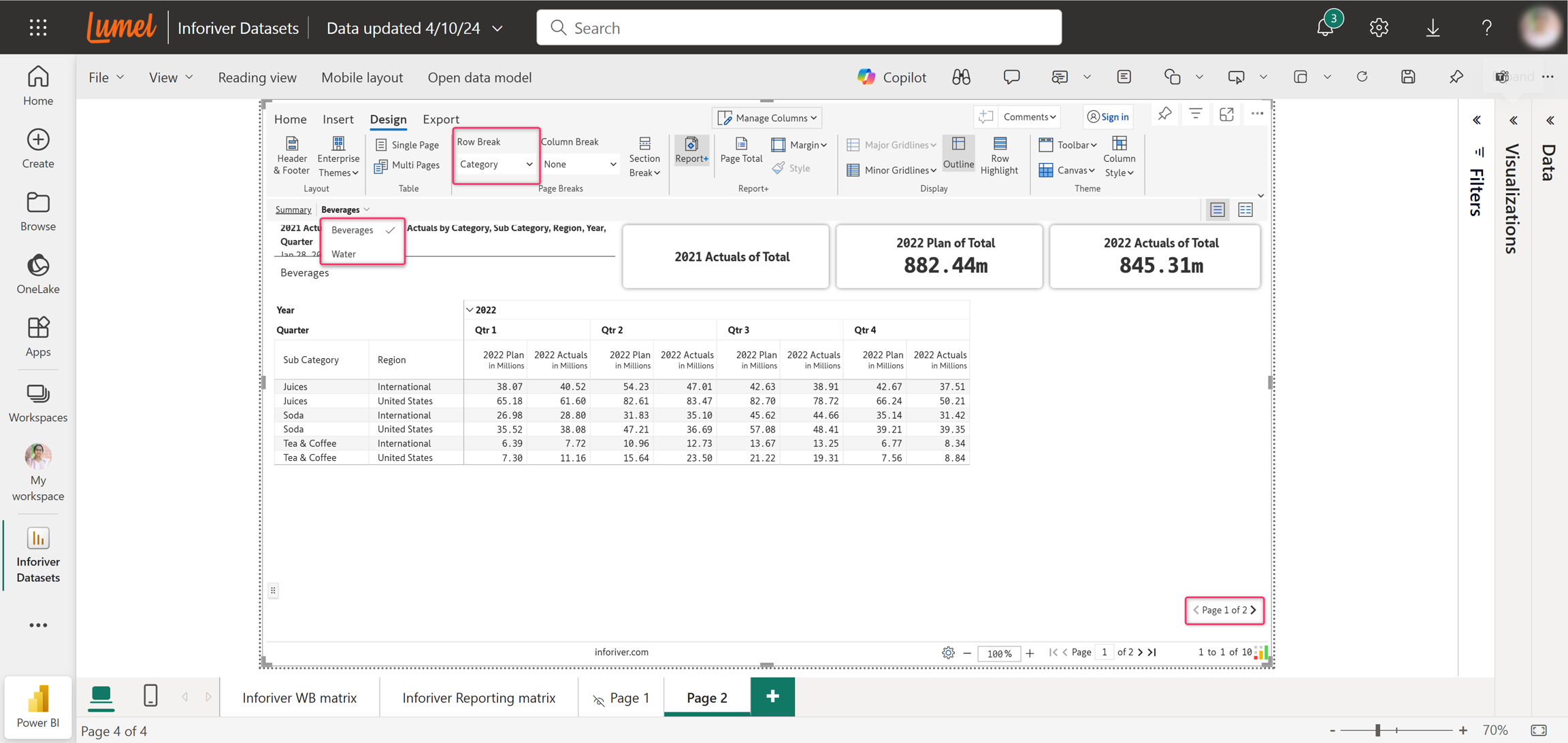 You can create subscriptions based on the Report+ categories. In this report, we have two categories: Beverages and Water. These categories are available with page breaks, with each category taking up a page. You can send the records corresponding to each category to separate email IDs.