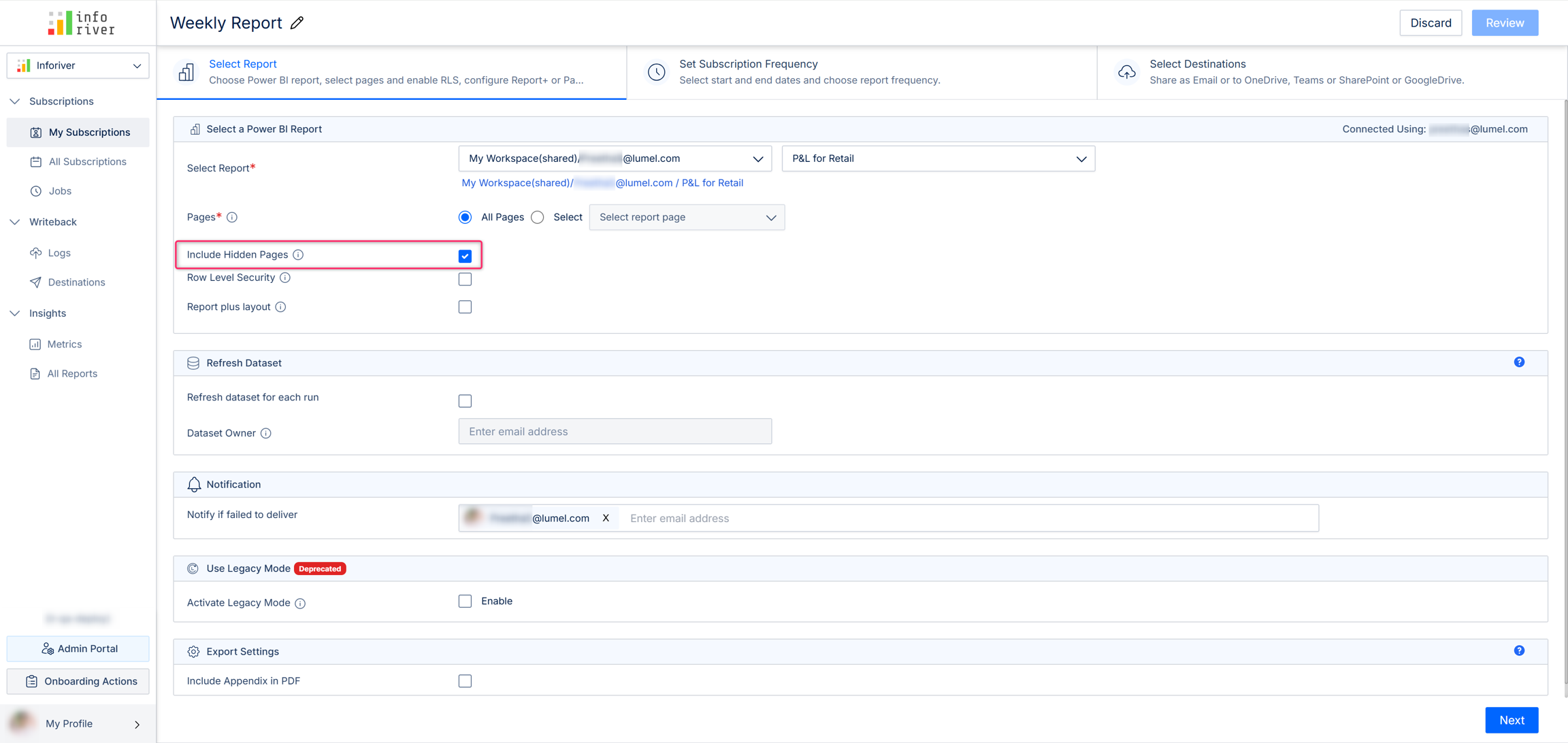 You can also publish reports containing hidden pages. When you set up your subscription, you will have the option to include hidden pages.