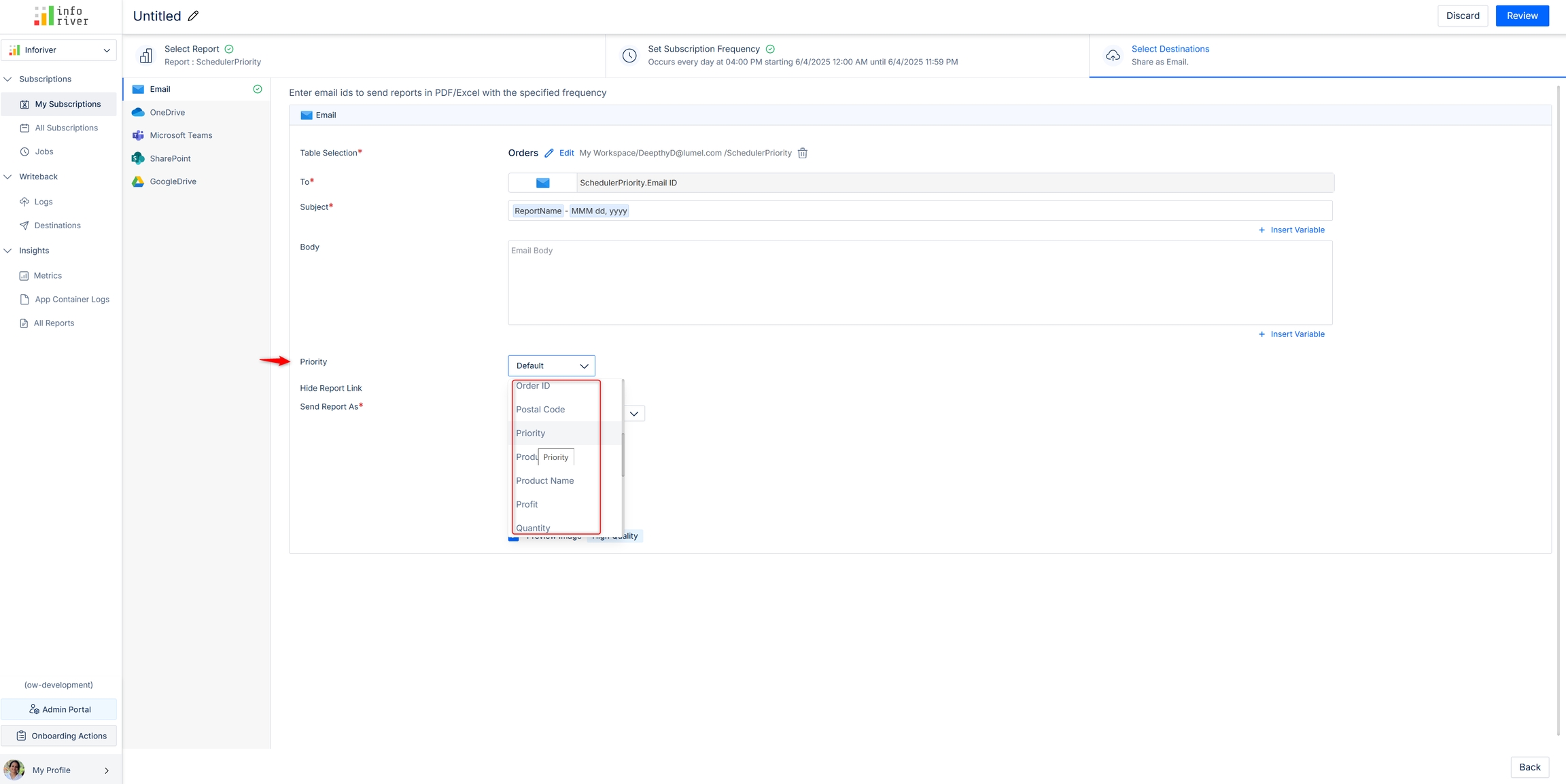 If required, select the column from the semantic model that contains the priority. The default subscription priority is taken if a column is not specified explicitly.