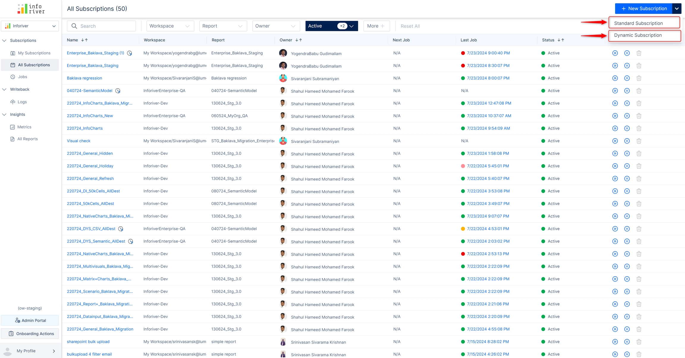 When you create a new subscription, you can choose between standard and dynamic subscriptions.