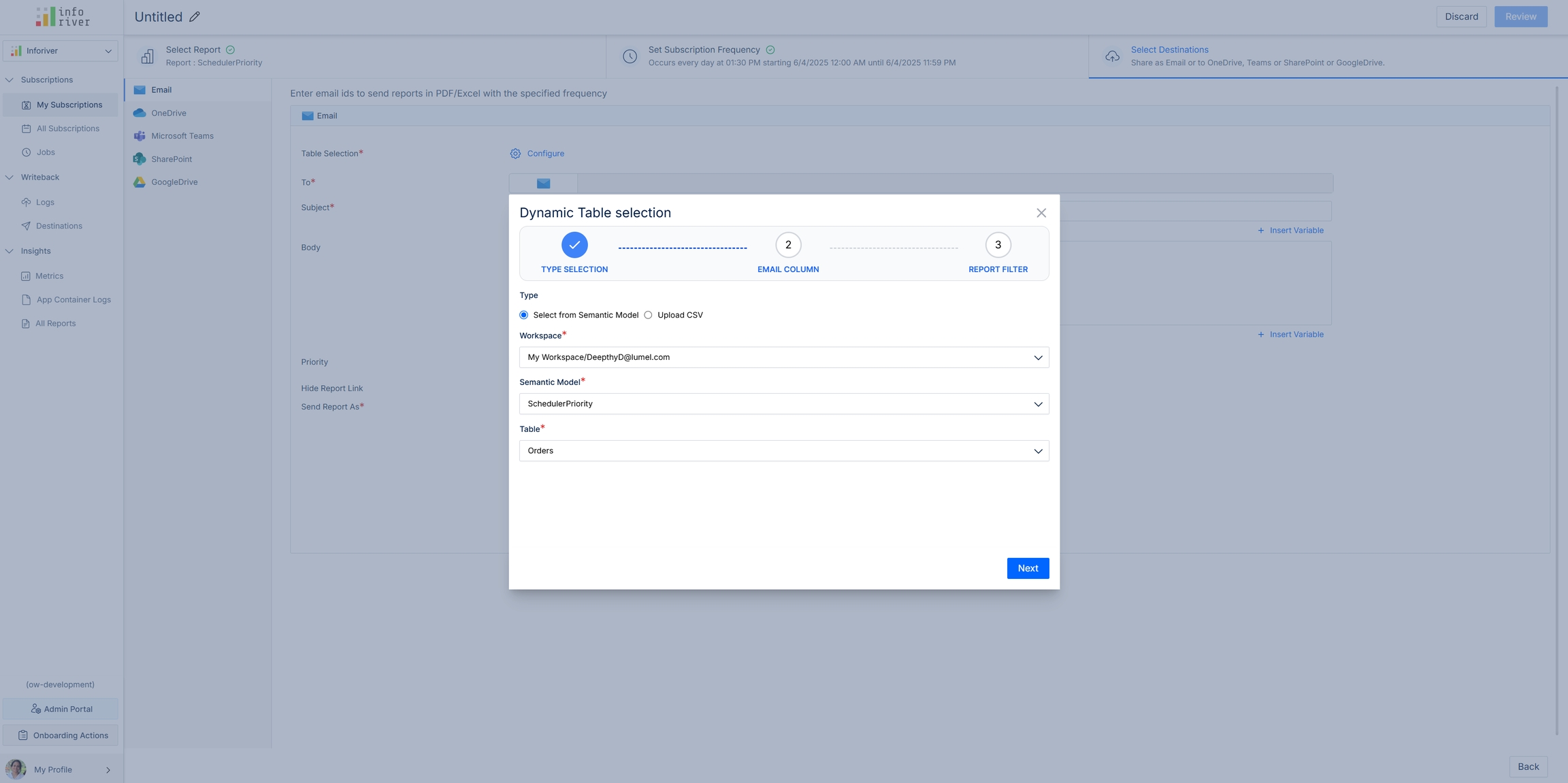 With dynamic subscriptions, you can regulate the dimension categories shared with users. With dynamic subscriptions, Inforiver can detect email IDs from your semantic models/CSV files and implicitly send the relevant records to the corresponding users.